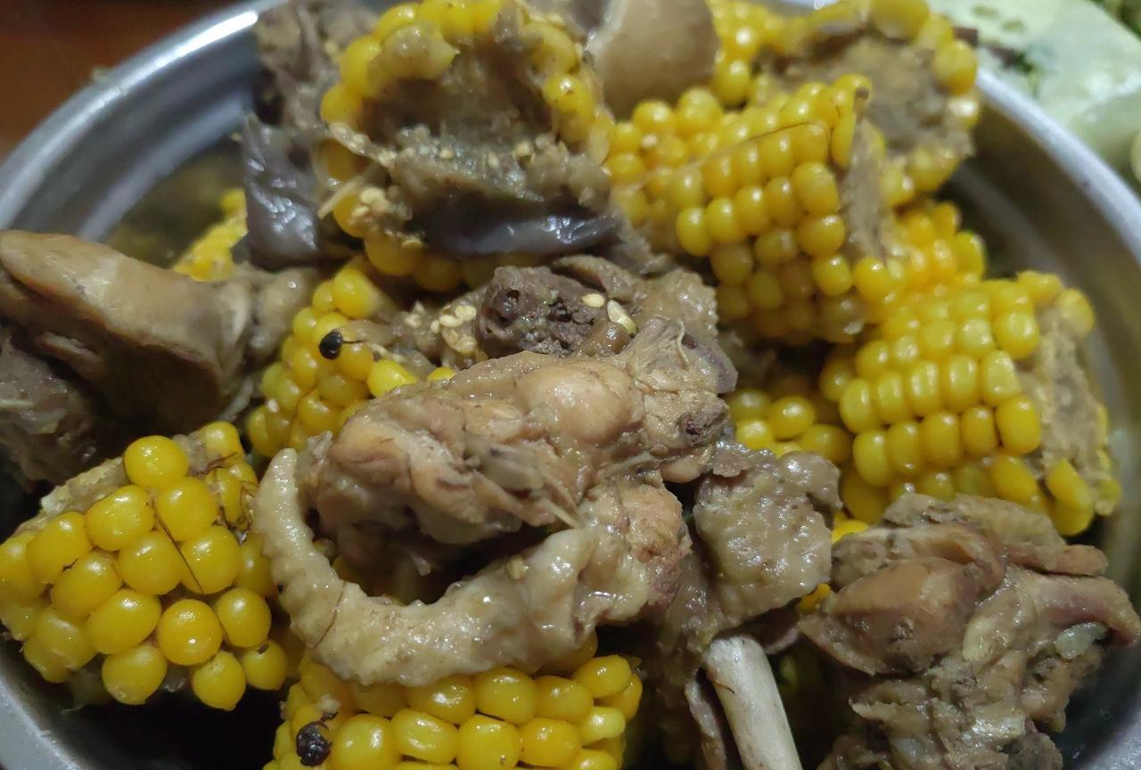 队友从菜园子割了一把韭菜,他今天心血来潮,做了韭菜坨。其实,我不建议他做,我知道他做得不好吃。无奈,人家积极性高,我到家得时候,已经做好了,味道一般!还没有三妹妹做得马齿苋菜坨好吃。 娃儿用玉米粒,加工了一个玉米汁儿,有点稠了,可能水加少了。我又兑了点开水,才觉得稀稠正好!香甜丝滑,确实好喝! 队友买了一只鸡,中午炖好了。人家爷俩商量,用鸡肉炖玉米,本来我安排的是,炖排骨玉米胡萝卜汤。得!成了改版的了,改就改吧,吃啥不是吃啊![大笑]不过,这个颜值和排骨玉米胡萝卜汤,差的不是一星半点! 我吃肉,狗狗就在旁边等着吃骨头。我说,狗狗,你太享福了,住着空调房,卧在地板砖上面,多舒服!还不用打工挣钱,也不用看家护院,太享受了!