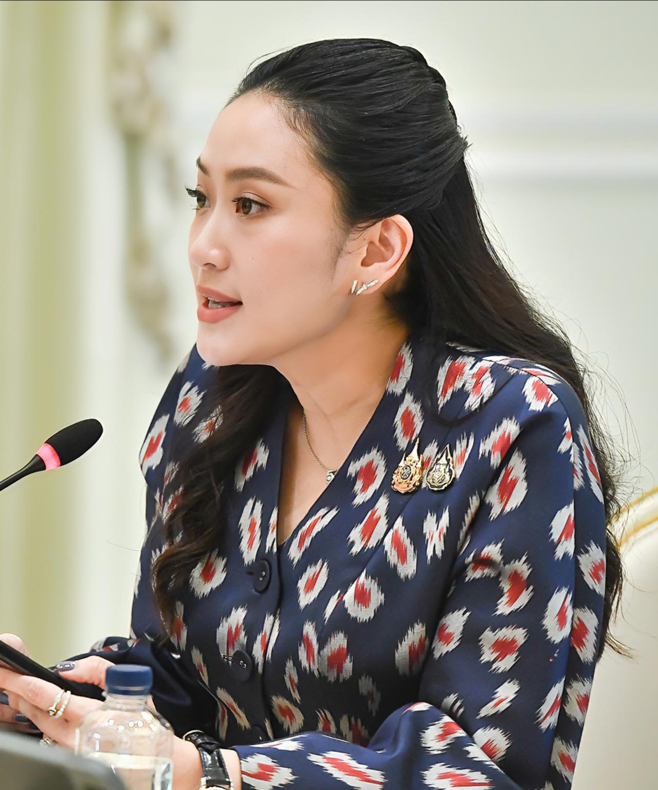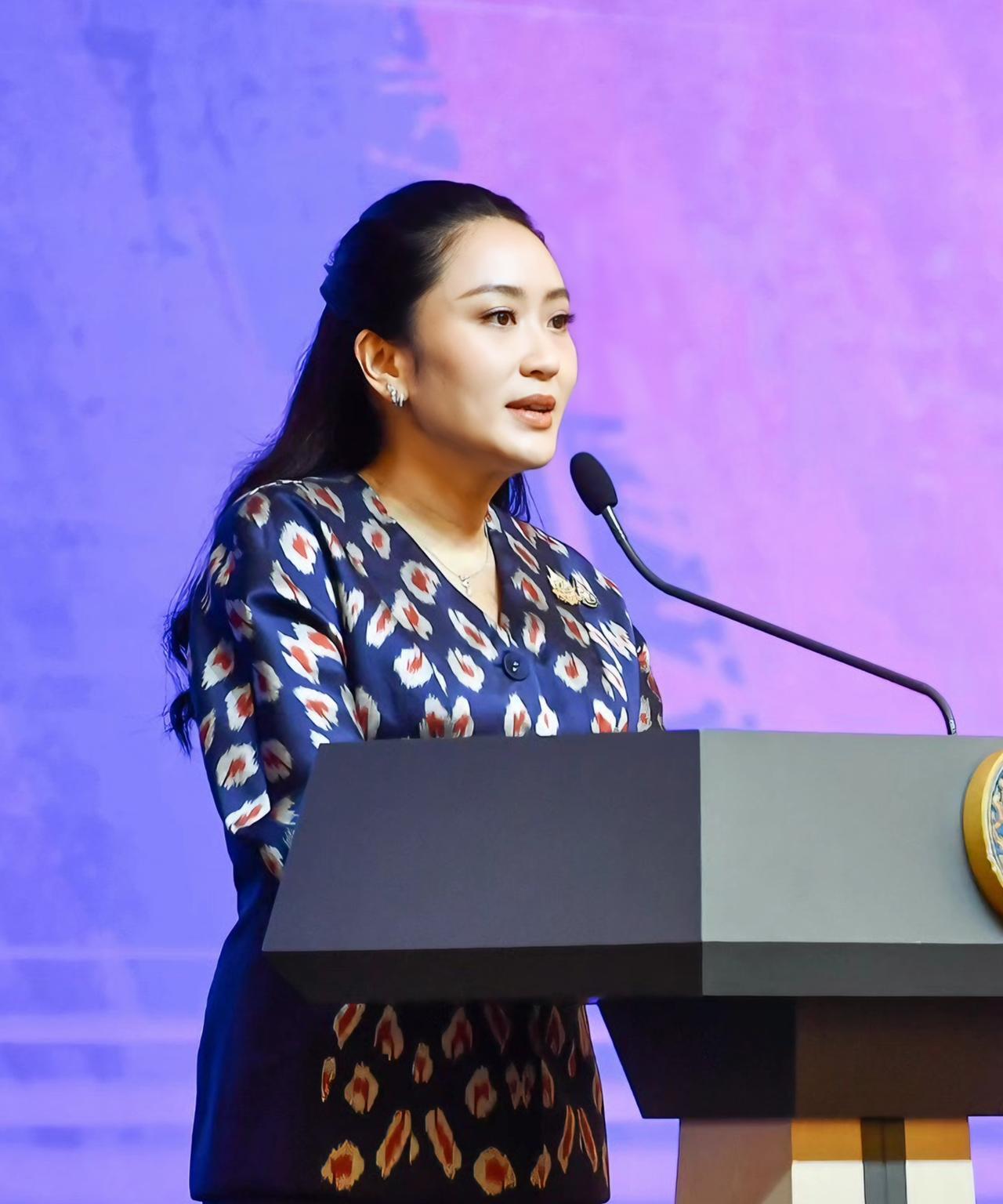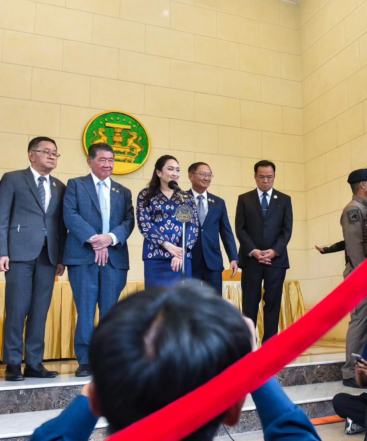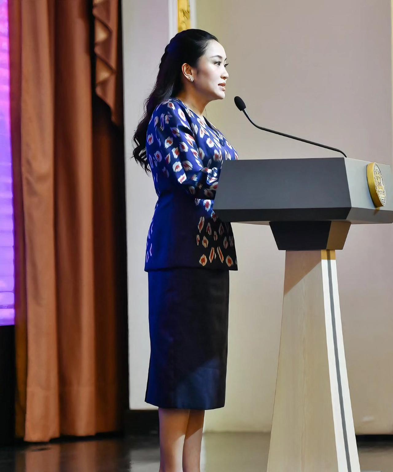 佩通坦优雅知性,一袭蓝色职业套裙好惊艳 6月18日,泰国总理佩通坦就泰柬局势接受
