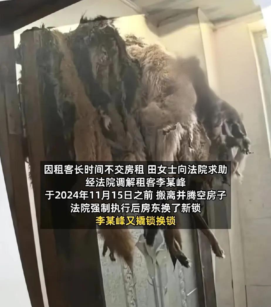 诡异租客!房间挂满狗皮,这到底是什么恶魔情侣租客啊!田女士家有一套200余平的房子空置,2017年租给了一对情侣,男友李某和女友张某。因二人一直拖欠房租,田女士于2024年11月15日通过法律途径强制执行,让这对情侣搬出了房子。没想到李某竟然带着女友张某撬锁换门,霸占田女士房子至今。 据房东田女士提供的照片和视频,上下两层,面积200多平的房子,竟然没有一处干净的地方,到处都是污秽,堆满了垃圾。 更让人触目惊心的是:偌大的阳台晾衣杆上,竟然挂满了狗皮!卫生间的门框上,也挂满了狗皮! 真的让我百思不得其解,就算是开狗肉馆的,也不会把狗皮这样挂在自己家里吧!对此,你怎么看呢?#无良租客# #缺德租客# #诡异租客#