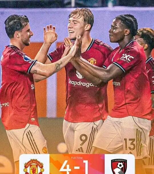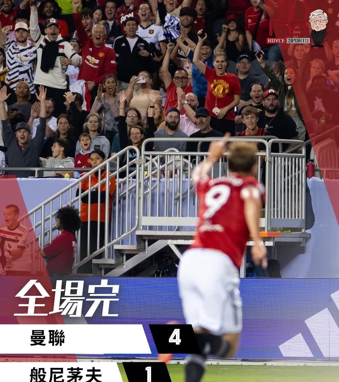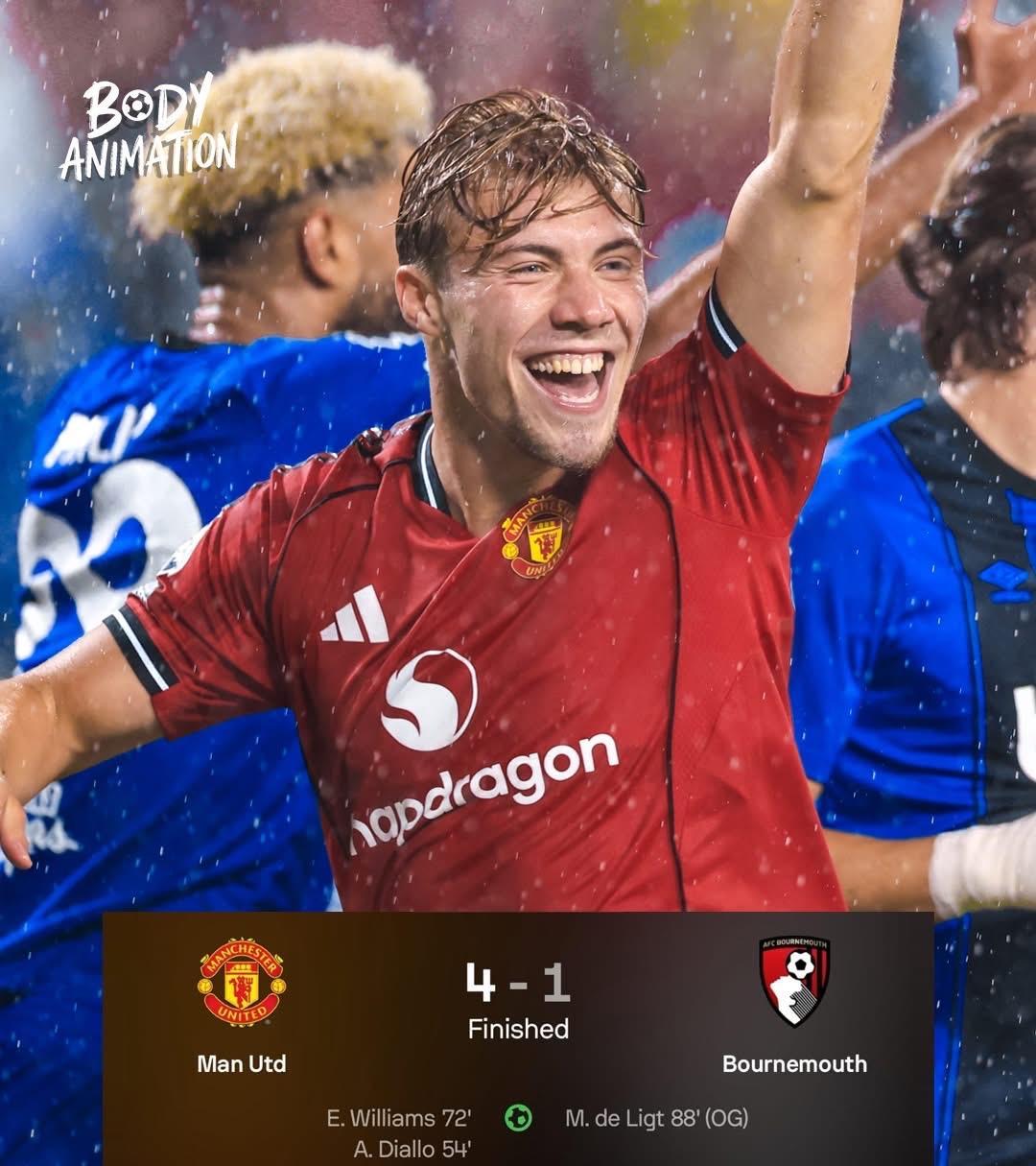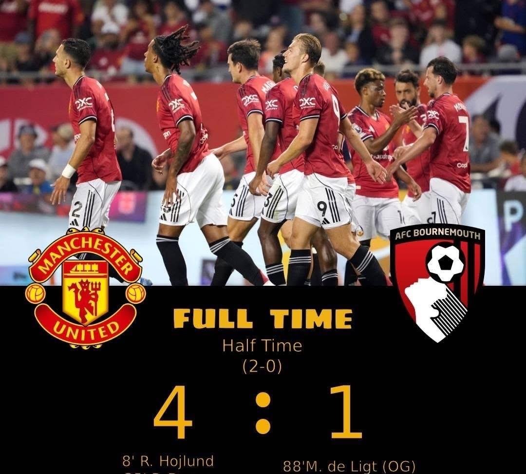 曼联回归?准备在2025/2026赛季夺冠!? 虽然只是友谊赛,但过去一个赛季,曼联几乎已经要忘记赢球的感觉了,所以能赢球,尽管只是友谊赛,那也是很棒的感觉。 红魔全场打进五个进球,最终以4比1大胜伯恩茅斯。 要知道,上赛季曼联可是曾经在主场0比3惨败给小樱桃的,现在可以复仇,信心上是非常关键的。 据了解,主教练阿莫林为曼联定下了要赢得英超冠军的目标。 或许很多球迷会嗤之以鼻,但曼联始终是曼联,红魔的存在,就是为了争夺冠军,不是吗? 霍伊伦德 8' 多尔古 25' 阿马德 53' 威廉姆斯 72' 德莱赫特 88' (OG)