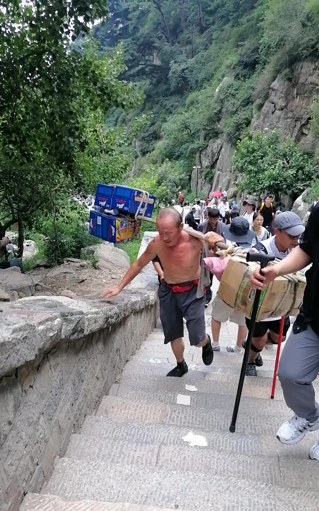 以前上学时学过一篇文章,泰山挑山工,当时也觉得也没什么,只到自己亲身经历了一次,才知道挑山工的不易,用他们吧,好多路人都觉得心疼,不用吧,他们又失去了生活来源,不知道咋整