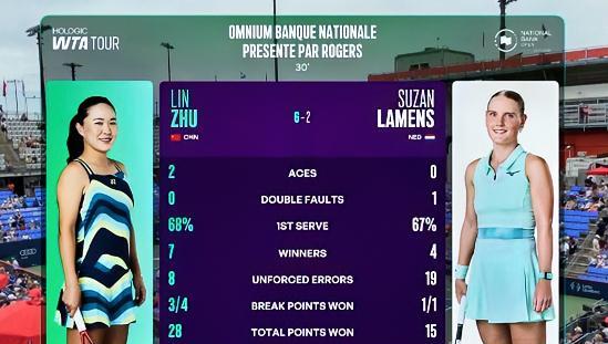 朱琳要继续赢!! 在正在进行的蒙特利尔女单1/16比赛中,朱琳对阵世界排名64位