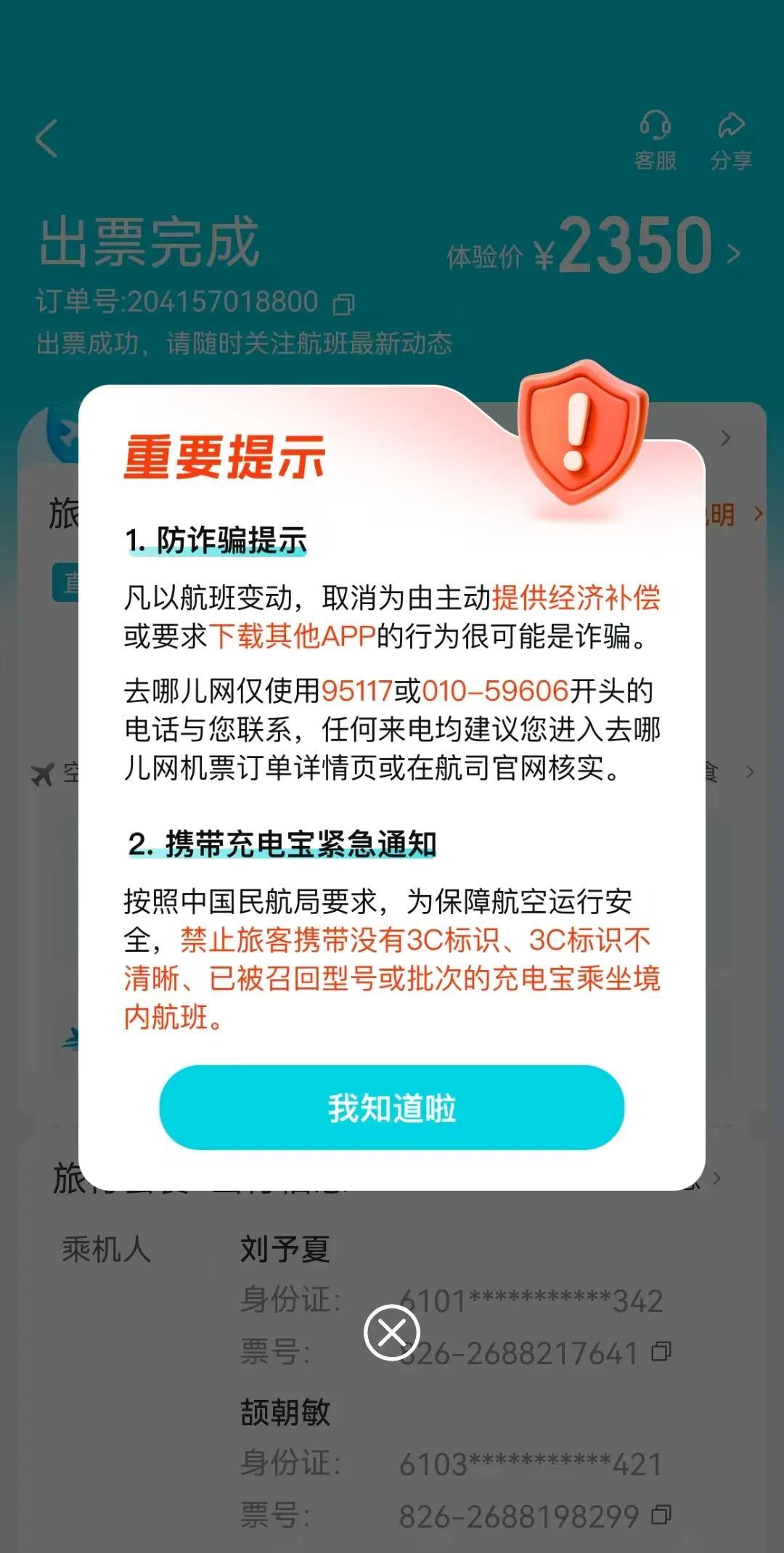今天发生了一件事,我很惊奇,骗子们真是神通广大啊,他们是如何获得信息,并依此来行骗的? 妹妹出行的机票刚买好一天,不是她自己买的,是我女儿在自己的购票系统上买的,女儿没接到电话,妹妹却接到了自称航空公司的号码打来的电话,说她买的这趟航班因故障取消了,建议改签前半个小时的航班。然后推荐了个App,叫点进去操作。 还好妹妹警惕性高,给我女儿打了个电话,女儿立马咨询了航空公司,说没有这回事。 虽然没受损失,但是百思不得其解,从正规的购票系统买的票,怎么会有人窃取到信息? 后来从网上找到了航空公司发的信息,里面就有这方面的骗局提醒,大家看看,以后有类似情况发生时,多长个心眼。 #头号创作者激励计划#航