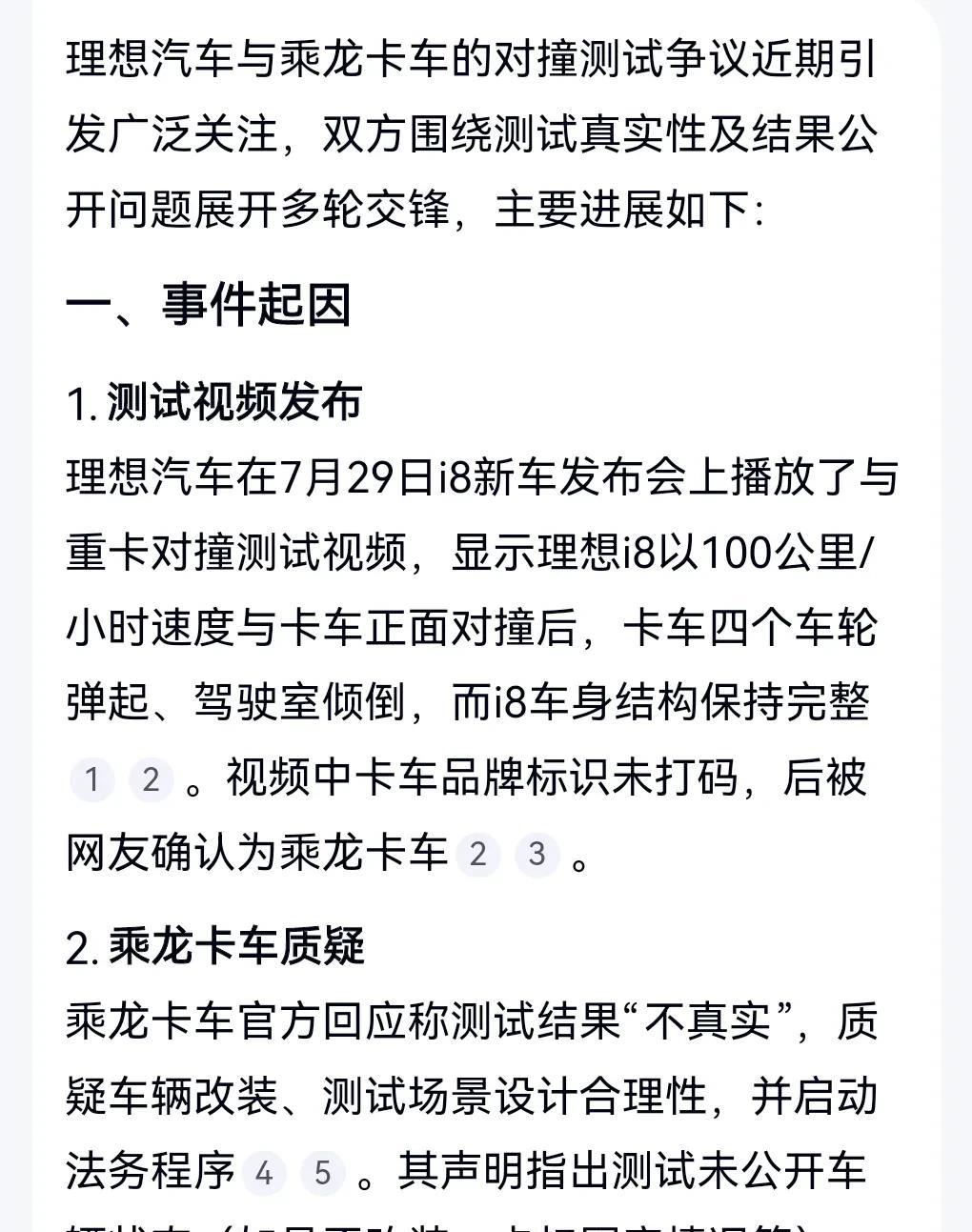 此前理想发布了i8与乘龙卡车对撞的视频,卡车4个轮子被弹起的视频。 而不地道的是,还显示卡车竟然是乘龙牌子的,这肯定让乘龙不爽。 所以乘龙方面给出了质疑。 7月31日,理想倒是挺有底气的说那就再撞一次。 不知道乘龙方面会不会接招? 毕竟接不接招都是有风险的。 这可真是个难题。#理想邀请乘龙卡车直播对撞#