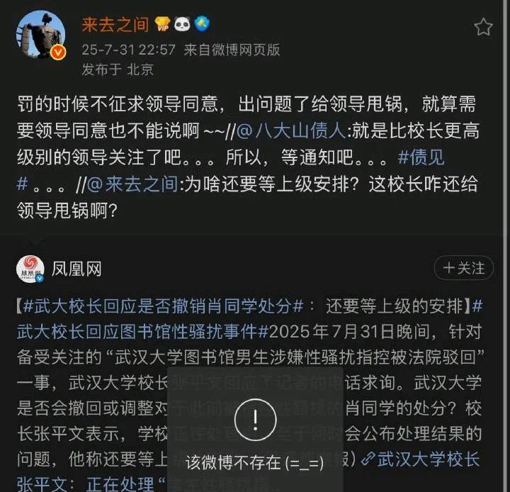 武大校长回应是否撤销肖同学处分:等上级安排! 来总:罚的时候不征求上级意见! 出