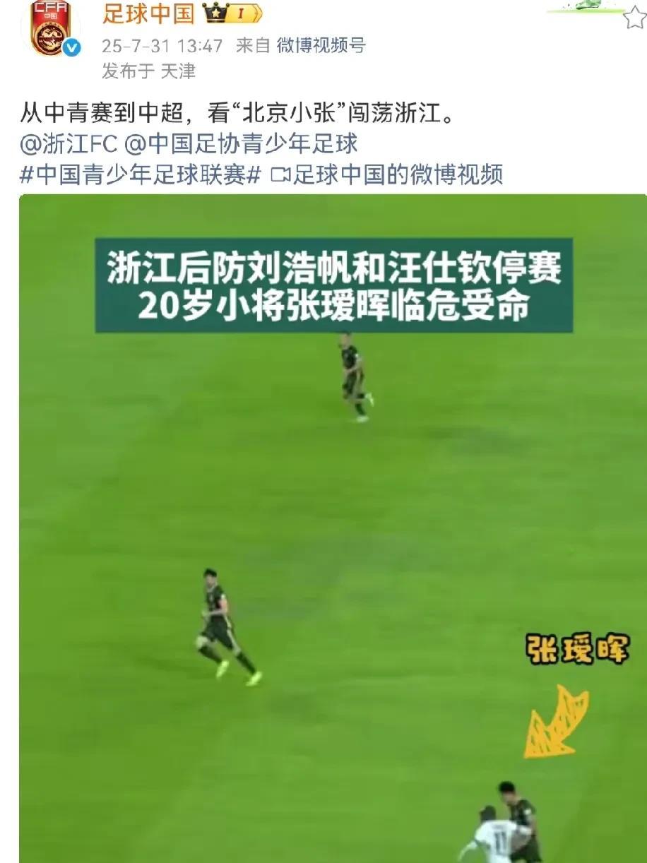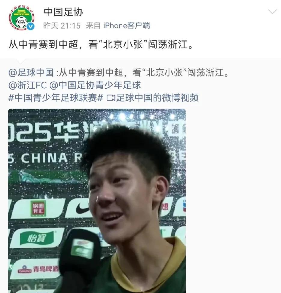 #头号创作者激励计划# 7月31日晚,中国足协在社媒转发了由足球中国发布的《从中青到中超,看“北京小张”闯荡浙江》的视频,这简直是破天荒的头一遭。 如果“北京籍”小将像山东、上海、成都、大连那样新人辈出,中国足协和足球中国还不得忙死。#中国足球#
