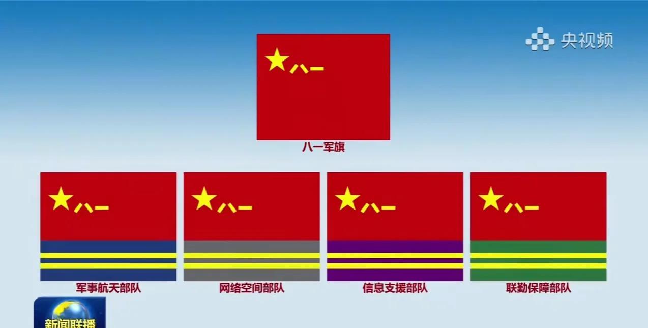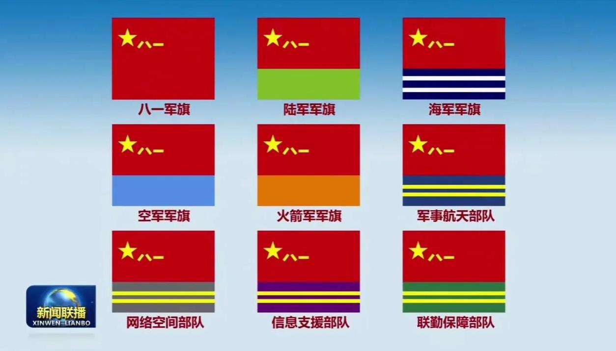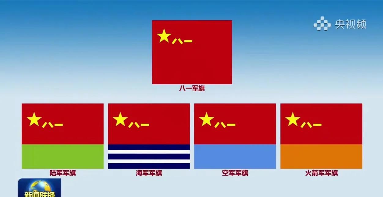 昨晚(7月31日),在新闻联播中发布了新时代中国人民解放军军旗、各军种军旗和各兵