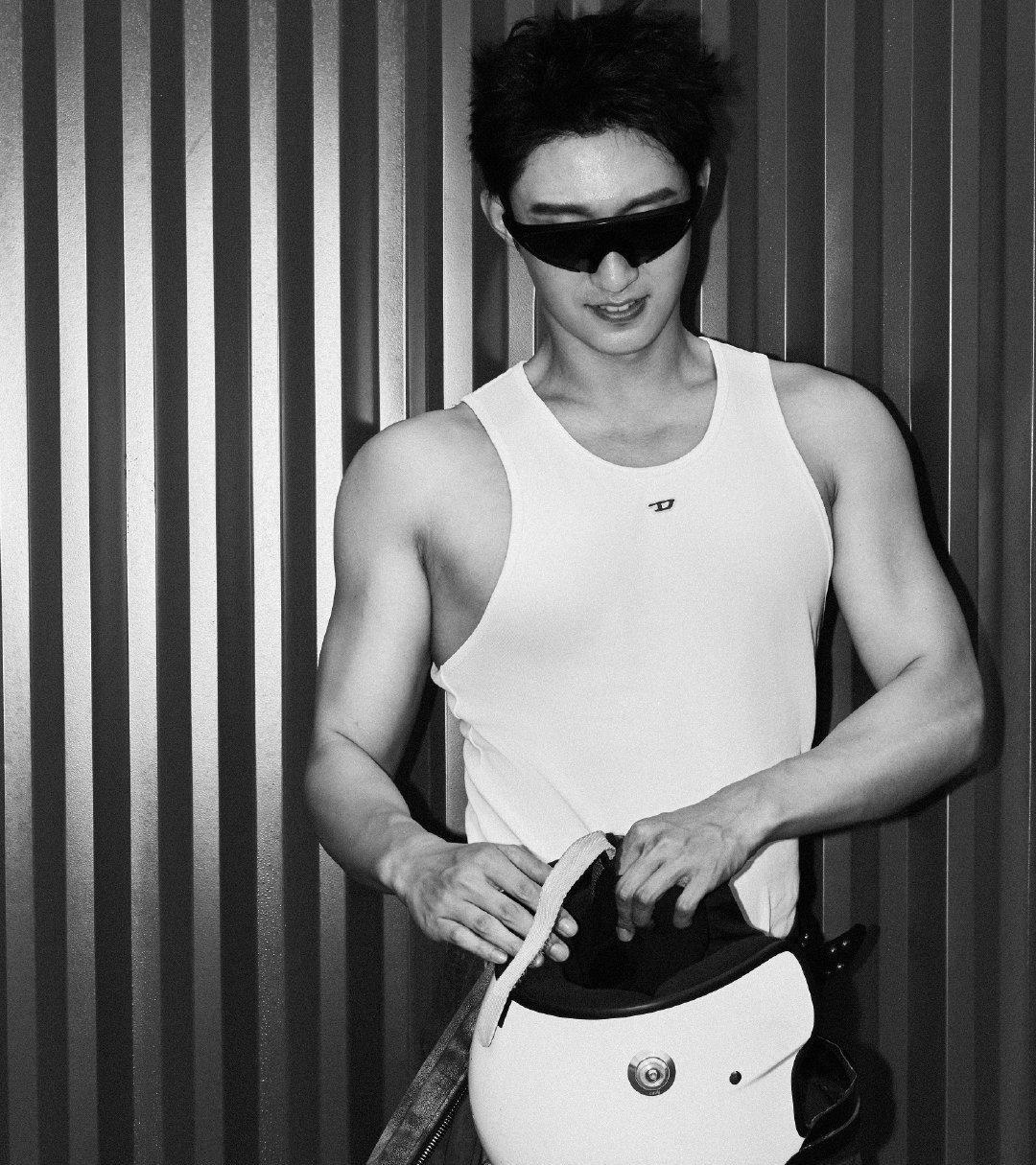黄景瑜的背心造型确实把力量感和线条美平衡得恰到好处,手臂的流畅肌肉线条、宽肩窄腰