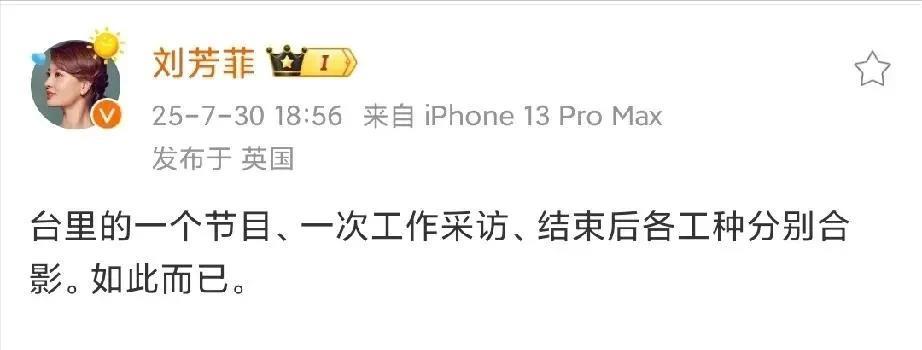 刘芳菲发了条模糊动态,被扯进释永信的事?合影是真是假?[震惊] 7月30日,她发了句:台里的节目、工作采访、结束后合影。如此而已,没说具体事。 有人直接评论少林,把这和释永信被查的事绑在一起。毕竟释永信那事牵扯不少人,李湘、杨澜的旧接触都被翻了出来。 刘芳菲2012年采访过释永信的旧照也被扒了,当时她问他为啥当方丈,他说责任心强、团结僧众。还有张合照传是她,后来有人澄清,长得像而已,不是她。 她这动态,是在回应旧照争议?还是另有说法?现在说不清。 网友猜得凶,也不是没影儿,释永信事件牵扯广,沾边的都容易被联想。 但没实锤前,瞎传也不对,模糊的话,总被放大解读。 是网友想多了,还是真有隐情? 你觉得她是在回应,还是网友联想太宽?