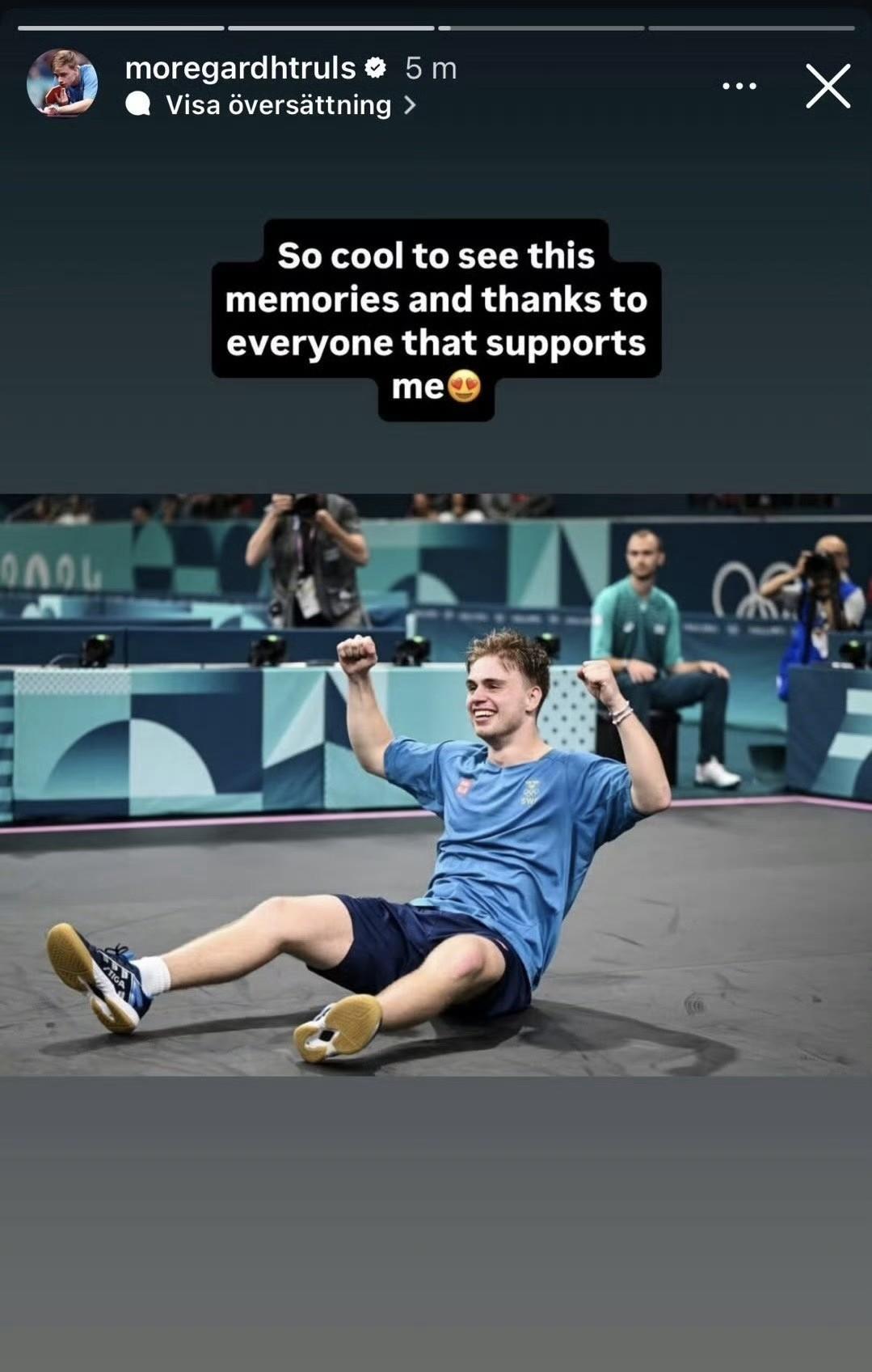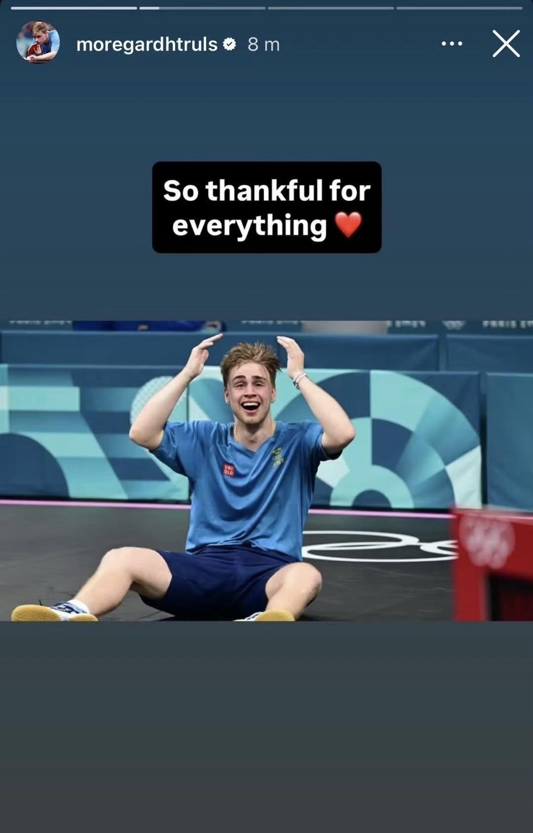 莫雷加德正在边喝香槟,边度过自己的巴黎奥运会一周年纪念日。 小莫,堪比外协里的张继科,资源回报率高到惊世骇俗,他第一次上世乒赛,就喜提世乒赛单打亚军,第一次上奥运会,就闯入决赛,勇夺银牌。 其实,这个履历表,就算放到中国乒乓历代主力里,都很震撼。 莫雷加德ins放的回忆。就是他打败世界第一的那一天。 他在那里满地打滚,兴奋到无以自拔时,但是淘汰掉的一线外协达科,路过他,都当场呆愣在原地。 莫雷加德成为了外协的偶像,即使是法国的勒布伦兄弟,都在媒体采访时,讲莫雷加德的故事是如何激励他们。 瓦尔德内尔的传奇太久远了,欧洲人上一次在奥运会这种四年一度的举世瞩目盛会,打败国乒主力,都是20年前的老黄历了。 而现在,有个新的瑞典人,来给他们当“精神奶嘴”,原来在重要赛事打败国乒主力,并不是梦。 过了一年,小莫的头像还是换回了自己传奇之旅的最浓墨重彩一笔:他穿着蓝色优衣库超吸汗,不留痕战袍,举着棱角优美的六边形球拍,开始在上半区“狂杀”。 从那天起,天下谁人不识君? 现在看更神奇,莫雷加德连破世乒赛男单冠军王楚钦,送他32强,再克世界杯男单冠军雨果,彻底击毁他的灵魂,梦断颁奖台,杀进决赛。 而莫雷加德本人,其实连洲际赛冠军都没有,他在欧洲杯其实连达科都打不过。 更离谱的是,他也不是故意养精蓄锐,就是不上奥运会,他爆种不起来。 举个例子,莫雷加德和非洲杯男单冠军奥玛·阿萨尔一共交手过三次。 第一次是2023年德班世乒赛,莫雷加德输。 第二次是2024年澳门世界杯,莫雷加德输。 第三次是2024年巴黎奥运会,莫雷加德职业生涯首胜奥玛·阿萨尔,闯入四强,碰面雨果。 莫雷加德,唯爱奥运会。 #头号创作者激励计划#