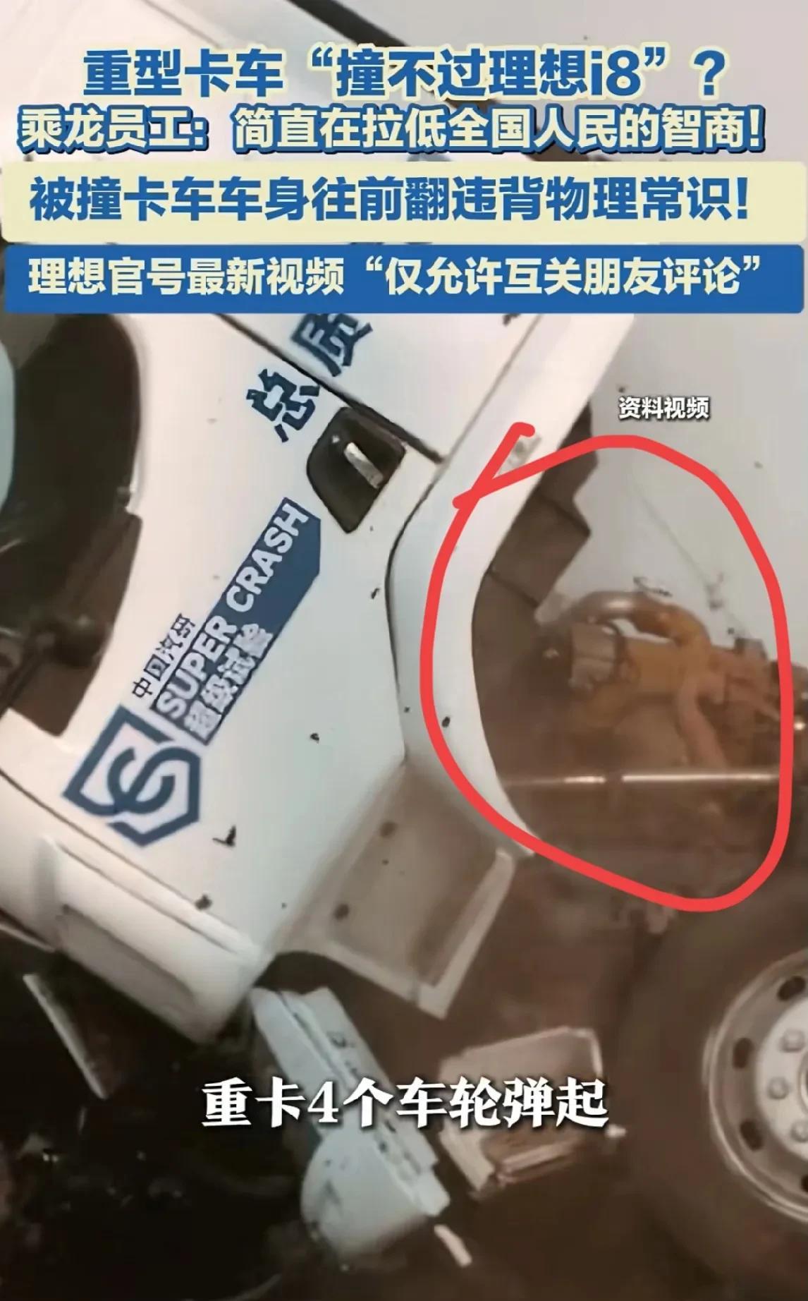 中国汽研九挺理想,回应称碰撞测试完全符合规定和标准,但碰撞出现的一个细节让人怀疑 根据中国汽研对外的说法他们是公平公正的,没有偏袒一方,都是拿全新的车去测试。 乘龙卡车与理想相撞后,4个车轮弹起,卡车头都倒在理想上面的结果没有造假。 此事对乘龙公司带来很大的负面影响,毕竟一辆卡车与轿车相撞,轿车安然无恙卡车却受损严重,这种有违常识的现象,让人不得不怀疑卡车的质量。 也难怪乘龙会出来辟谣,并安排法务部出手。 从视频来看,中国汽研所说是全新的两辆车,但有网友发现卡车头倒下的时候,车上的机械却是生锈很严重的样子(图3),因此有人怀疑这辆车是否真的是新的呢?