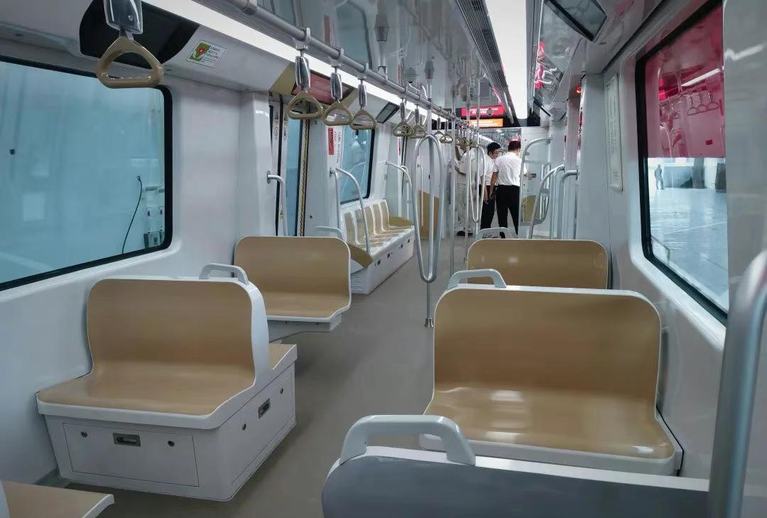 合肥地铁S1的第一辆车01来了,这个车看起来的确还不错,这个颜色有点古韵风,尤其是这个座椅。让从市区到机场坐飞机的可以正面坐着,看看外面的风景,因为沿线有高架段。 就是不知道啥时候可以正式通车了,目前看快了。
