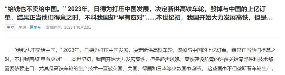 “给钱也不卖给中国。”为了打压中国发展,2023年日本和德国联合断供高铁车轮,毁