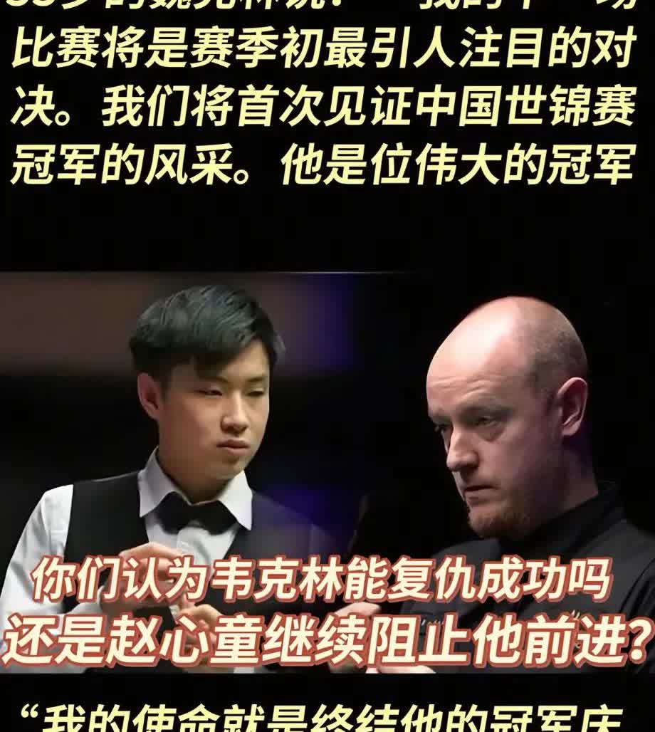 你说巧不巧!赵心童与韦克林的三翻战又要来了,就是8月份的沙特大师赛,他俩再次上演