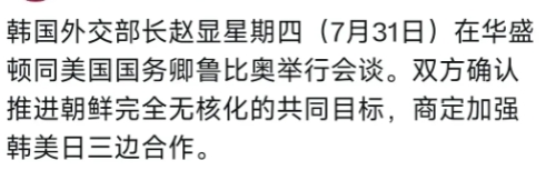 美国开始行动了!来自外媒8月1日的消息说,美国国务卿卢比奥和韩国外交部长进行了会