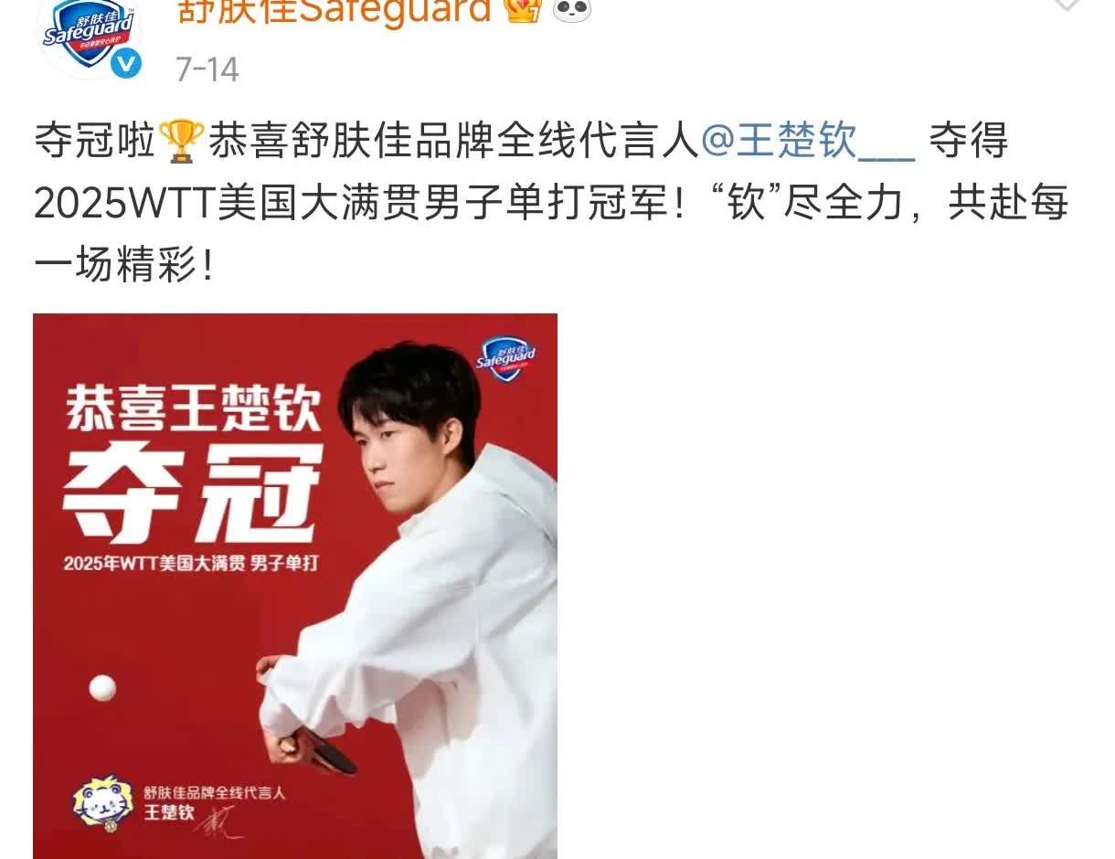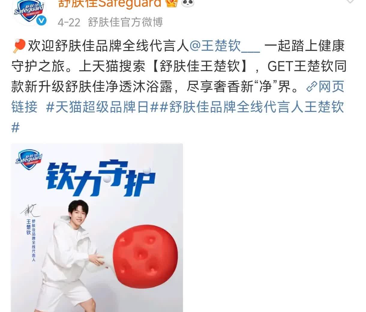 原来舒肤佳4月份都官宣王楚钦全线代言人身份了? 4月20日澳门世界杯结束,王楚