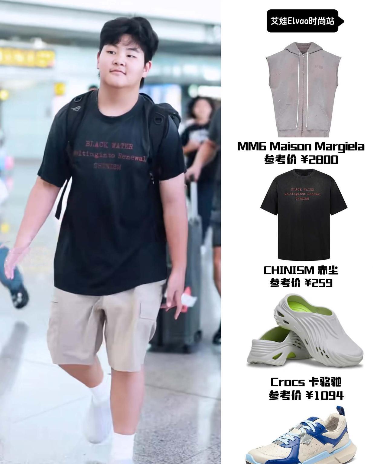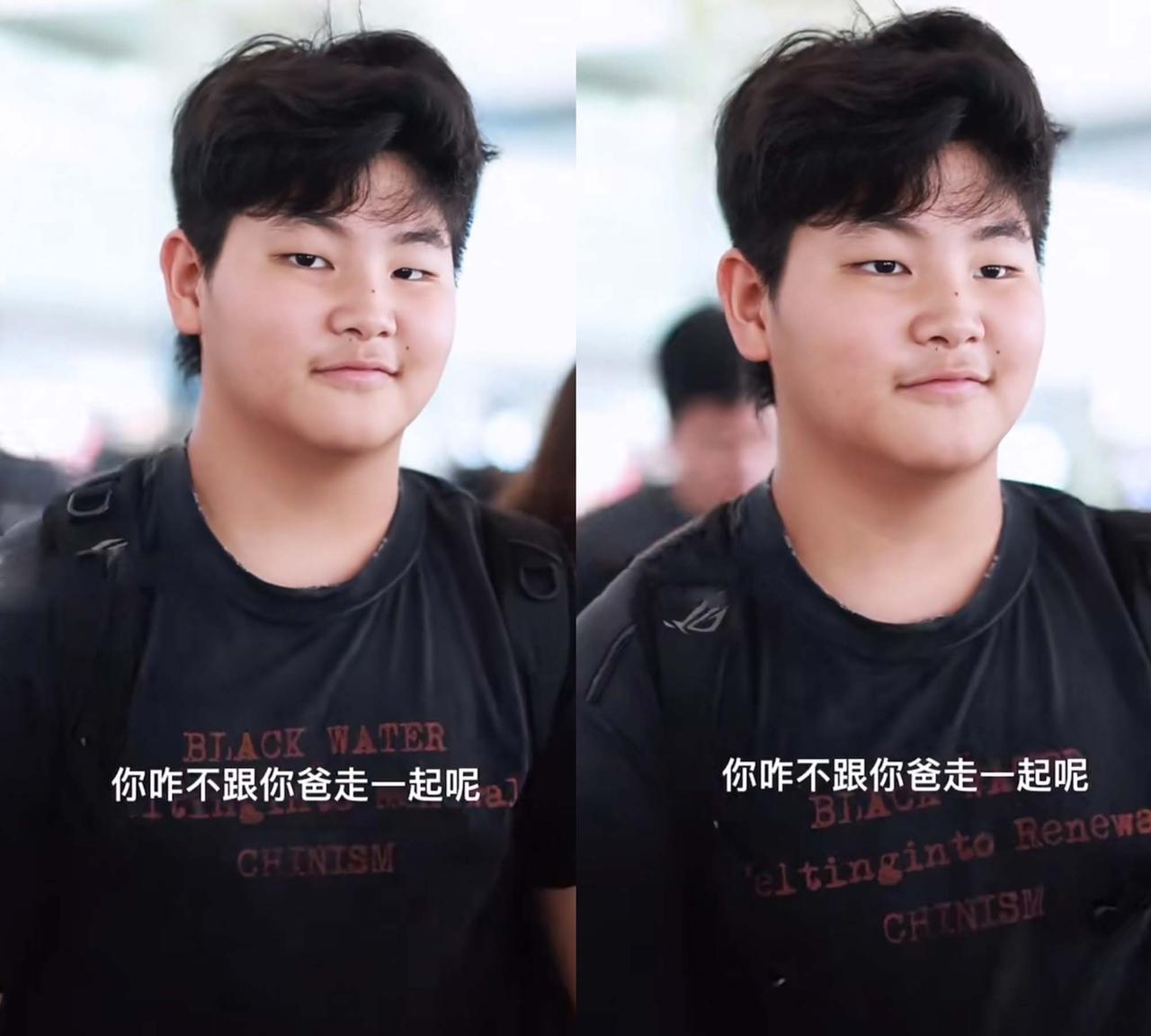 沙溢带着小鱼儿回来了,两人在机场大步行走,小鱼儿穿黑色字母T恤休闲潮酷,被网友夸