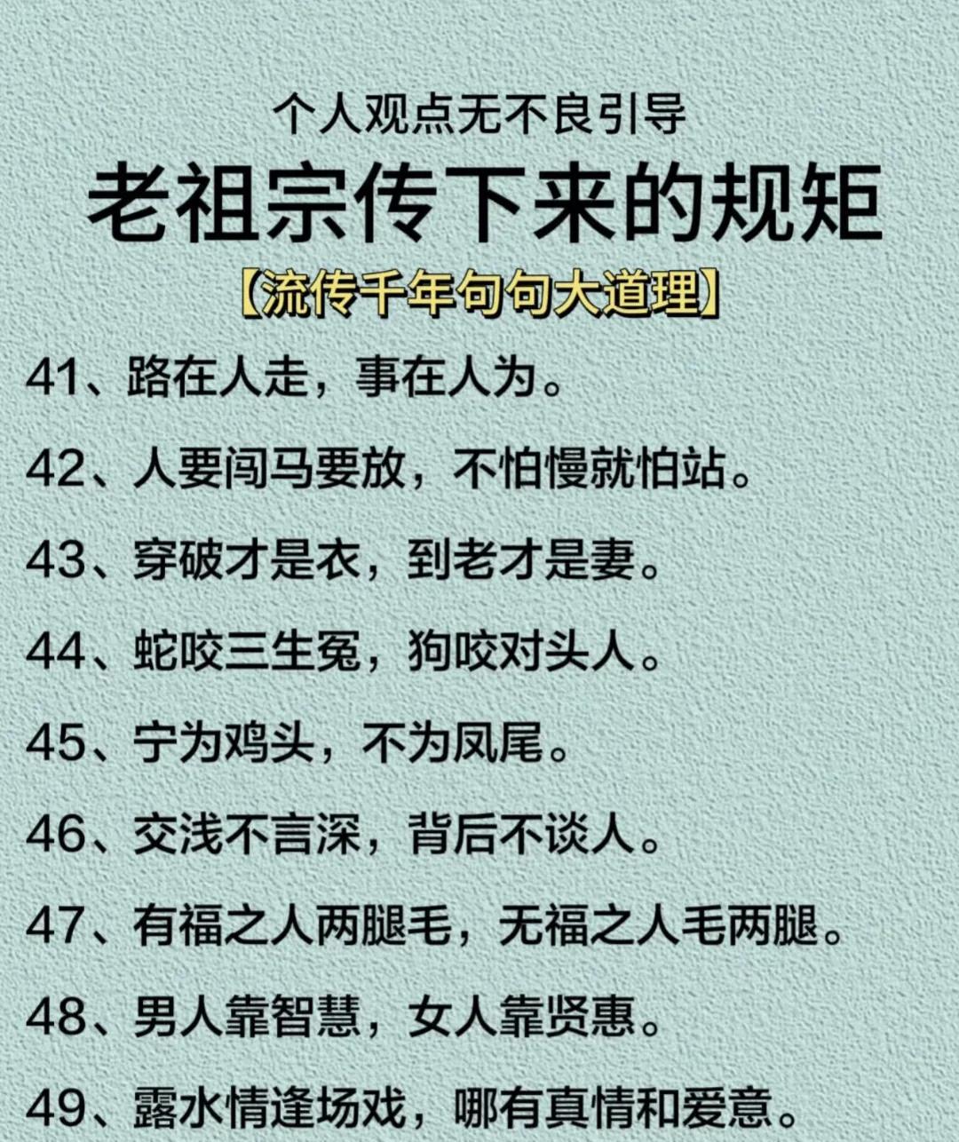 #老祖宗传下来的规矩# 俗话说“不听老人言吃亏在眼前”。今天小编和大家一起看看