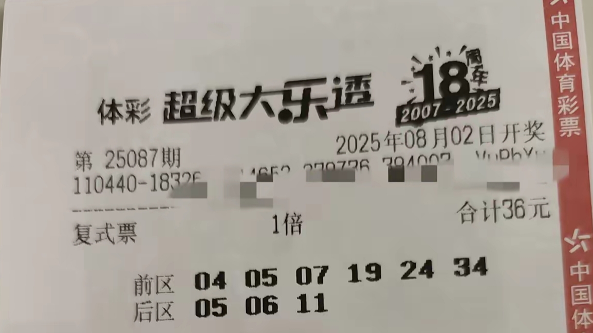 大乐透25087期单注倍投喜迎八月开门红