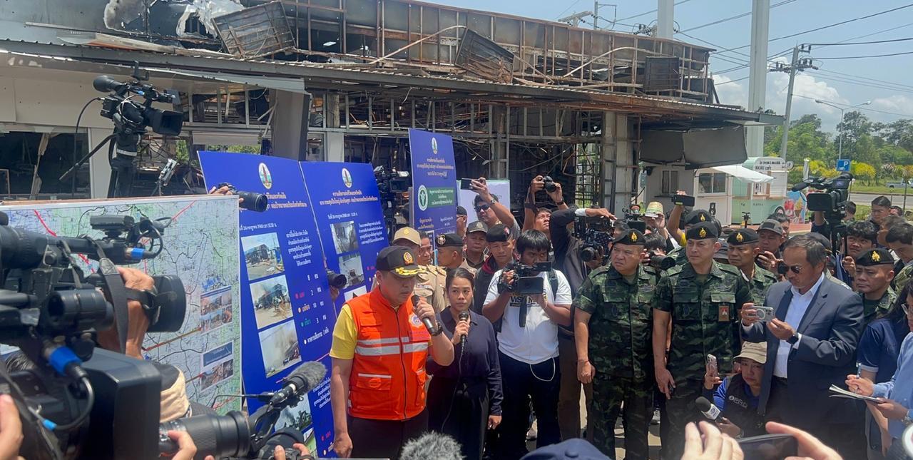 柬埔寨刚把各国武官拉到现场,泰国又来拉人了:8月1日,就在柬埔寨国防部将中、美、俄、法、日,以及东盟等国驻当地武官拉到柬泰冲突战场进行考察的一天后,泰国国防部也照样来了一次,也邀请各国武官前往战场考察。 从照片看,泰国方面邀请的国家似乎更多,有中、美、英、德、印、日、韩等国,还有越南、老挝、新加坡、加拿大、印尼、巴基斯坦等国,图2和图3可以看到中国驻泰国的武官正在查看泰国方面设置的说明展板。泰国方面在一个被柬埔寨炮火摧毁的加油站旁边设立了参观介绍点,向各国武官介绍了柬埔寨方面对平民的打击,并将多个受伤平民和家属安排在现场。现场家属的照片显示,有儿童死于柬埔寨方面的炮火。 根据之前泰国公共卫生部公布的伤亡情况,本次冲突导致泰国方面17名平民死亡、38名平民受伤,另外,还有15名军人死亡。