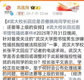 原本其实就是很小的一件事,幕后引爆舆论的是那些人哪?每天都有成千上万的人发帖,每天发生的性骚扰也是成千上万,为什么这个事件能点燃舆论?谁是幕后推手?当年网暴肖某性骚扰的和现在网暴杨某的其实都是同一批人,只是因为肖某隔了一段时间拿出了医院病例,他们转头又去攻击杨某,这些人就是鲁迅笔下那种吃着人血馒头的围观群众和一些推波助澜的势力,这些势力的真正目标只有一个,那就是武大,从他们开始利用舆论压力迫使武大处分肖某,到现在又利用杨某制造舆论施压武大,他们真正的目的是什么哪?下一步相信很快他们自己就会展示出来吧?因为大家都明白当下社会风气下武大的事应该在很多大学普遍存在