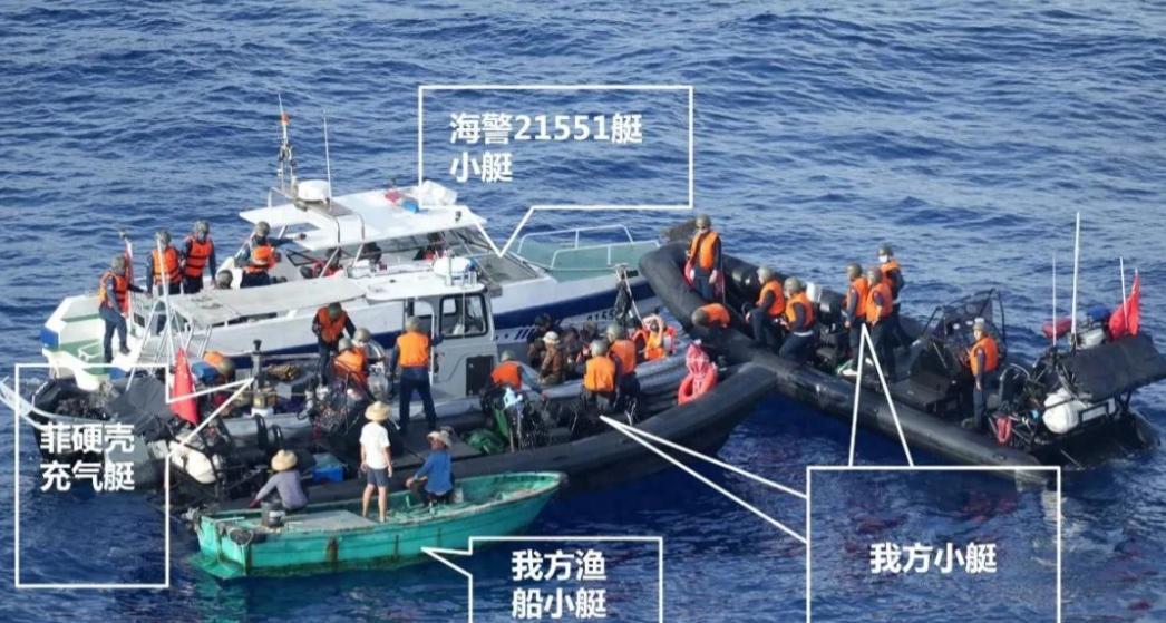 首次公开!中国海警仁爱礁霸气拖走菲侵犯船只,菲士兵掏出手枪但气势还是被压倒。 央