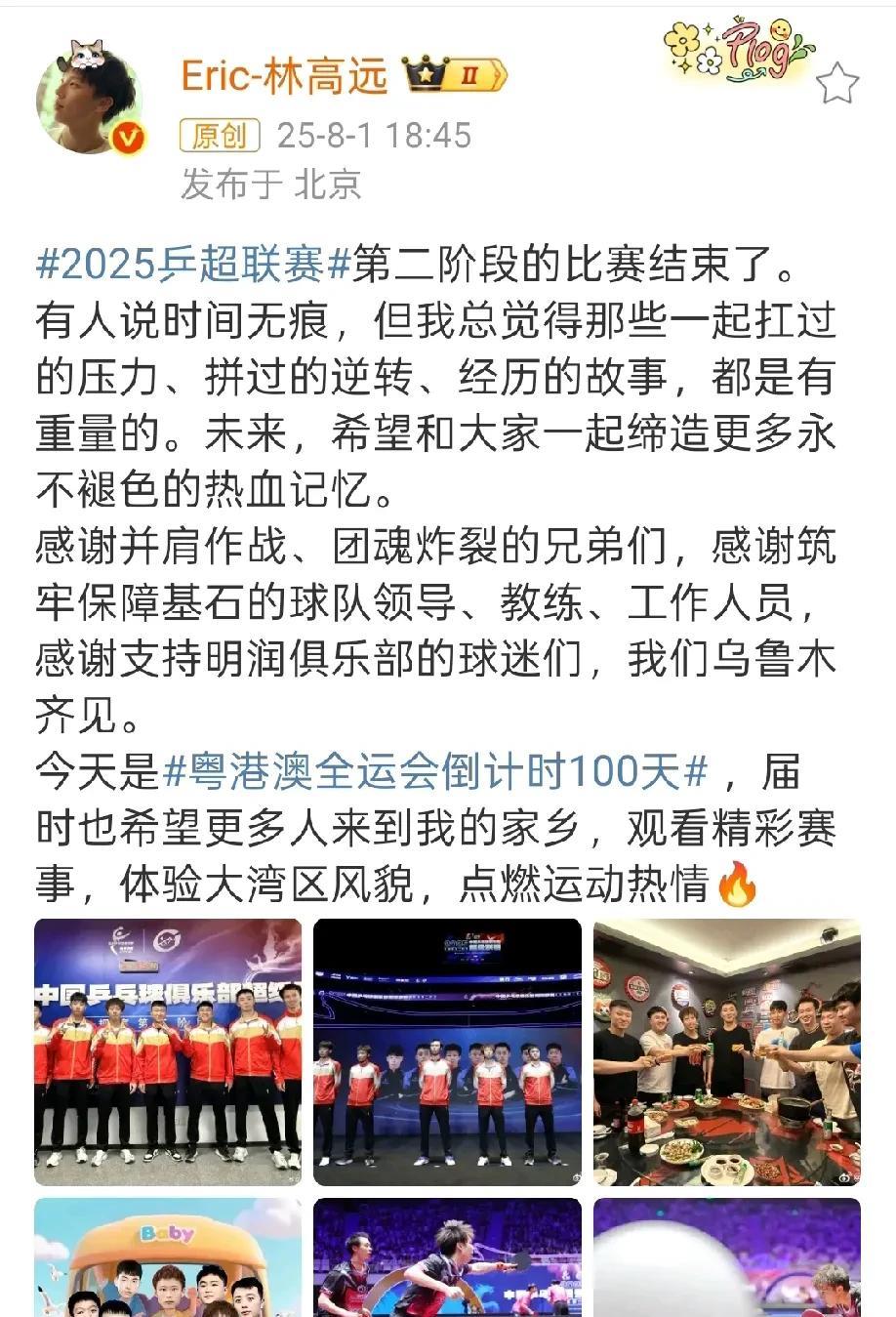 林高远终于更新了,迟来的乒超总结。 又看到林高远机场秀,这身衣服可不是谁都能驾驭的,只有高远穿出了帅气。 乒超第二阶段结束,汕头明润积分第四,离不开团魂炸裂的团队,当然高远就是团队的灵魂,第二阶段最炸裂的当属徐海东,和兄弟们缔造了永不褪色的热血记忆。 高远邀请大家去家乡参加全运会,点燃所有人的运动热情。 不知道林高远国乒之路还有多远,也不知道下一步怎样安排,相信琴棋书画样样精通,高远做什么都会很成功。 图片来自网络侵权可删。 #头号创作者激励计划#