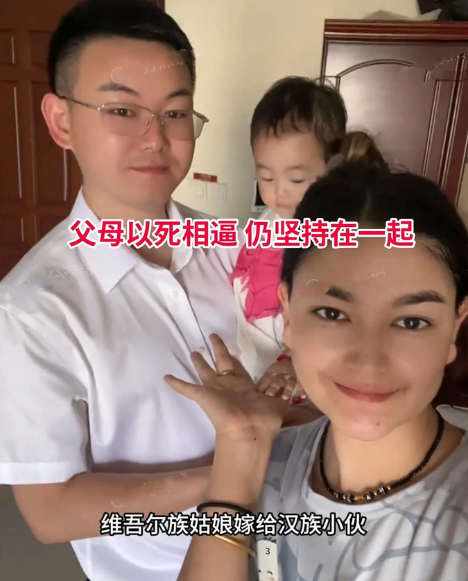 26岁的新疆妹子小古丽和32岁的汉族老公晓峰结婚快一年了。俩人有了个一岁女儿,但因为是跨民族婚姻,从订婚开始就惹来很多骂声。父母摔杯子逼她分手,说她忘了本,但小古丽坚持要过自己的日子。 晓峰戴眼镜,文质彬彬,小两口常在老家拍视频分享生活。但他们家大门始终没让老人踏进过,因为父亲扬言要断绝父女关系。小古丽说当儿媳后没人管着她作息,比在老家自由多了,但总有网友骂她不要脸。 有人发评论说“你结婚就不清真了”,小古丽直接回怼:“我爱吃不吃猪肉有啥问题?作为中国人我能自己选老公。”还有人骂她破坏民族团结,她气得截图保存,“我都想报警了”。 网上支持她的人更多,有人说“56个民族都是一家”,还有人调侃“现在姑娘都自己做主了”。小古丽说汉族亲戚从没问过她吃不吃猪肉,只是偶尔会提醒别喝凉水。 去年国家民委说现在跨民族结婚越来越多,主要在城市年轻人里。小古丽和晓峰最近搬去县城租房带娃,老人还没原谅他们。女儿会叫爸爸妈妈了,俩人说再难也不会分开。