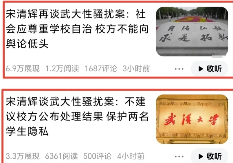 面对宋清辉的建议,不难看出他存在双标的行为。两个学校,两起事件,不管女生对错,他都是站在女生一边,是出于各种原因?
