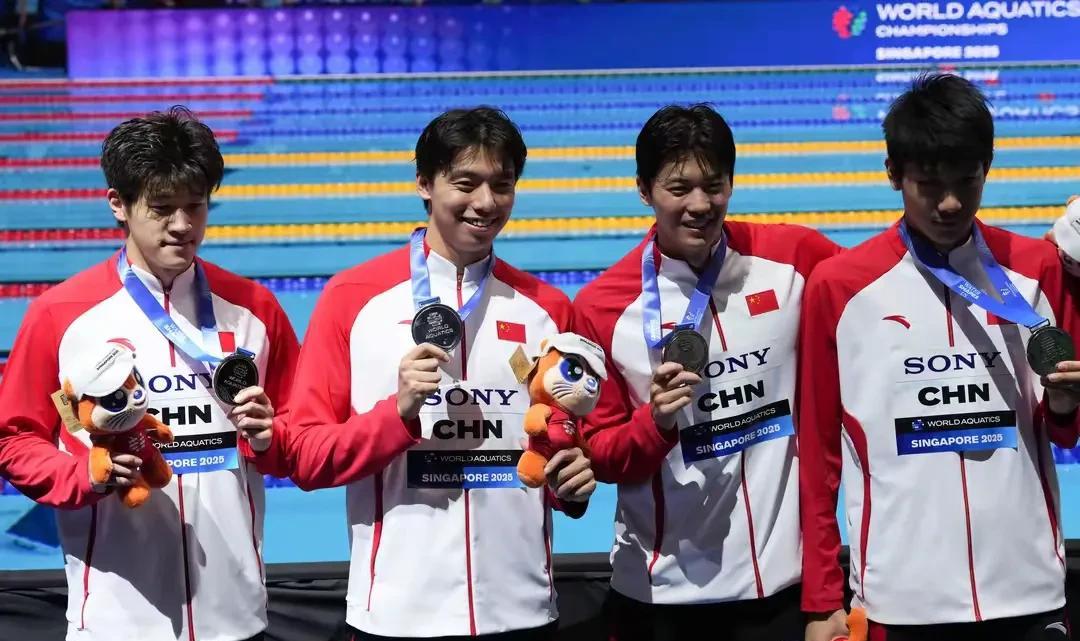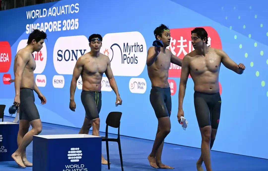 新加坡游泳世锦赛男子4×200米自由泳接力决赛,上午预赛由费立纬、季新杰、汪顺和