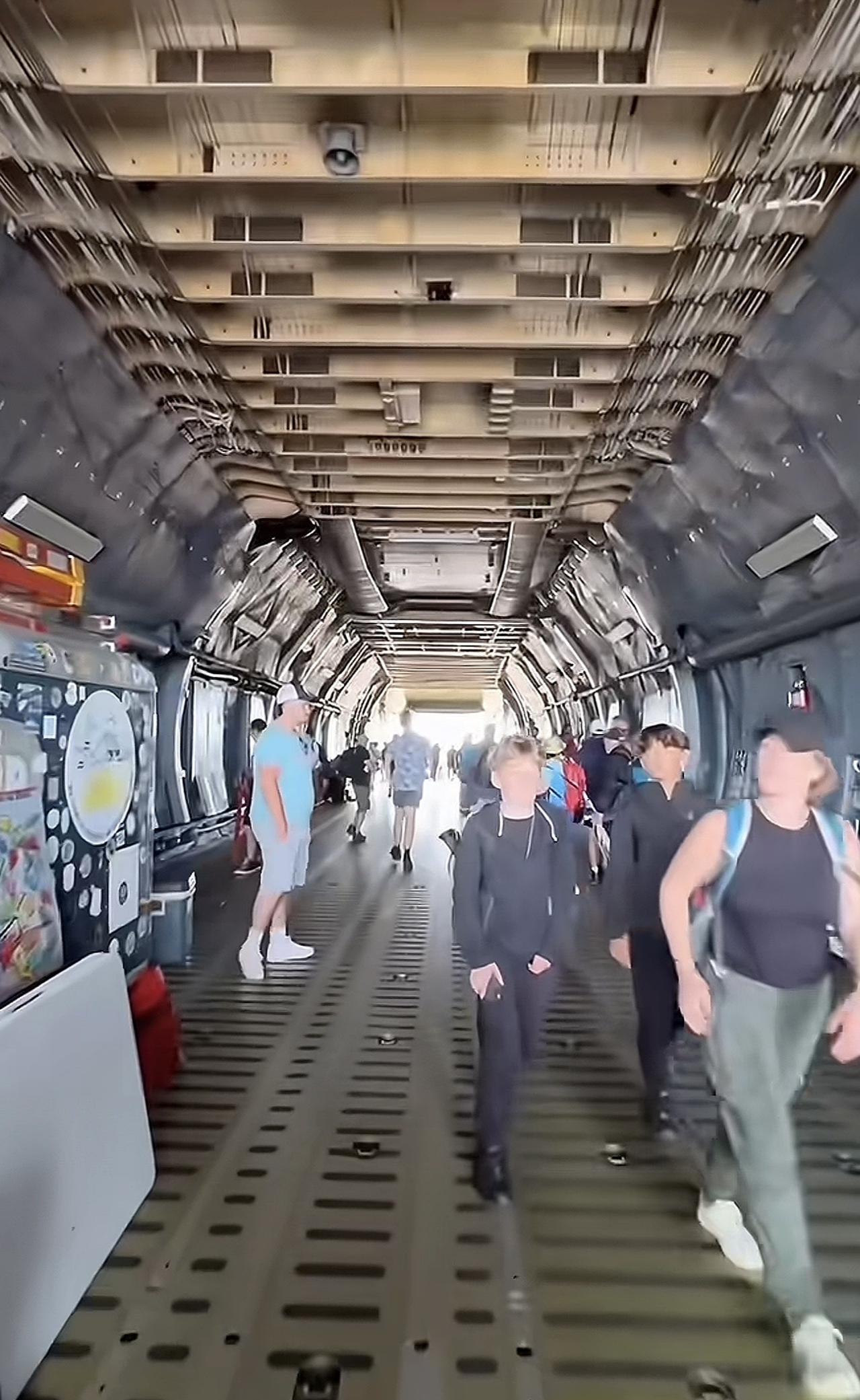 军事机密?不存在,随便拍! 大漂亮的幽灵B2轰炸机也好,空运巨兽“银河”C-5运输机也罢,开放日不收门票增收,随便路人零距离接触,拍摄,这自信心可见真的不是一般的强大,强到无敌手。 C-5运输机就是妥妥的一座空中仓库,移动堡垒,可以运输大量兵士,可以运载坦克,运载卡车,上面载人,下面装货,一次能运输高达120多吨。