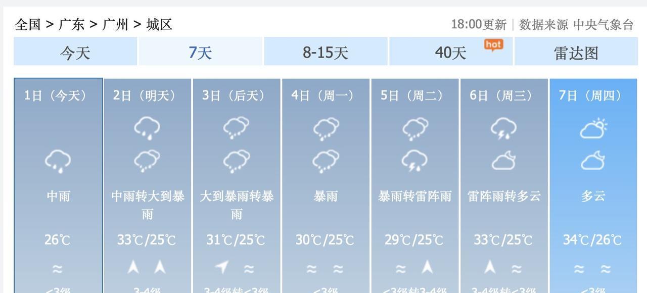 好惨!8月2日到5日,广东省广州市,每天都有大雨或者暴雨……珠三角,大湾区,都是