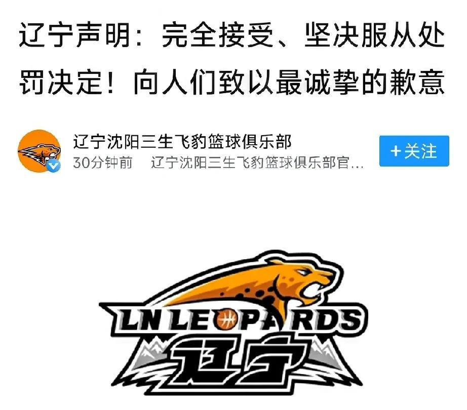 敢作敢当!辽宁男篮发文接受篮协顶格处理,虽然吃哑巴亏,这声明不推诿责任,展现成熟