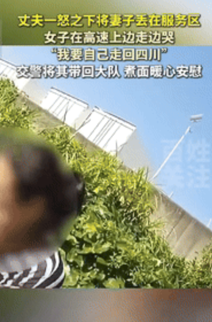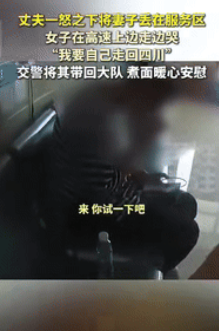 “寒心!”贵阳一女子和丈夫出车拉货途中,因家庭琐事,双方发生激烈争吵,丈夫一怒之下,将她丢在服务区便驾车离去,负气之下,女子打算步行到四川,交警发现女子后,将其带回大队,煮面暖心安慰,网友:看似丢了一次,实则丢了一生! 据百姓关注8月1日消息,女子看到丈夫把车开走后,眼泪不争气的流了下来,高速路上打不到车,她又不想求助旁人,让陌生人看笑话,于是决定走着离开服务区。 高速路上的汽车和货车非常多,速度也快,女子处境很危险,可内心的痛苦要比身体上痛百倍,俩交警驾车结伴巡逻时,看到了哭泣的女子。 她身边疾驰的车辆,让两人胆战心惊,为了解到女子遭遇了什么,两人赶到女子身边,面对陌生人的关心,女子再也忍不住,蹲在地上放声痛哭。 交警提出联系她丈夫来接她,女子却不愿意,她不想见丈夫,原本夫妻俩只是小矛盾,但谁都不愿意让步,最终女子落得这个下场。 眼看女子情绪越来越激动,交警决定把她带回去,等女子冷静下来,再继续沟通,在交谈的过程中,交警得知女子已经很久没进食了,于是二话没说就做了顿饭,让她先填饱肚子。 经过交流,女子终于愿意说出丈夫的联系方式,交警拨过去后,对面很快接听,交警将女子送到丈夫所在位置后,又对两人开解一番,两人和好如初,谢过交警后就离开了。 对于这件事情,大家有什么看法?