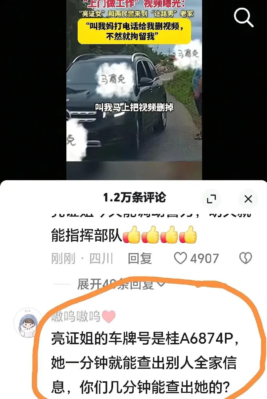 一分钟就能查得对方的姓名、住址,由此可见,大数据已然被滥用了,老百姓毫无隐私可言,谁来保障老百姓的人权(隐私权)呢?大众需要知晓真相!那女司机到底是什么身份?是通过何种渠道查到他人身份信息的?又是以什么理由前往派出所要求出警的?民警出警的依据在哪里?一同陪同前去登门的几个人分别是谁?他们的职务是什么?通过非官方渠道调查个人信息属于违法行为,若亮证姐利用官方渠道调取个人信息是会被开除公职的,这次亮证姐还把派出所民警也牵扯进来了,这属于公权私用,警察犯了大忌,弄不好也会被开除公职。她是一个极其愚蠢的女人,有着不错的工作,开着豪车,想必居住的房子也不会差,就安安稳稳地享受生活就好了,在农村道路上逞什么威风呢?这回说不定会葬送自己的大好前程。