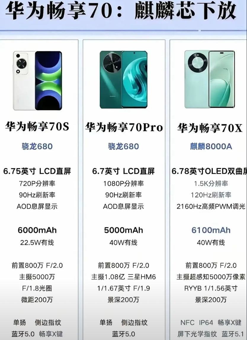 电池居然也突破6000mAh了,这不像华为的风格啊!我觉得这个70X完全抢了70Pro风头!