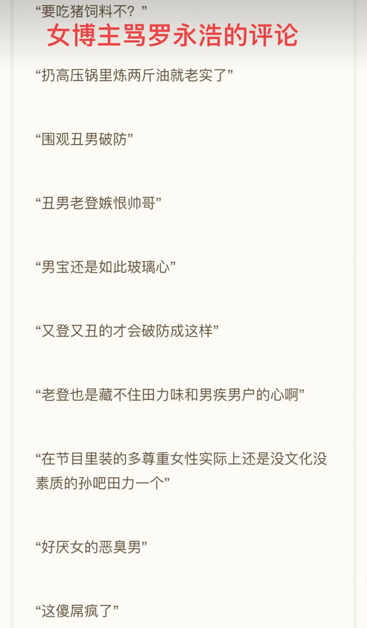 罗永浩跟一些女拳狂热者网上撕起来了。起因是有女网友提议脱口秀主持人换掉张绍刚,让庞博上,大概意思是张绍刚老丑爹味重,这就惹怒了罗永浩。发文回应,言辞激烈,然后引起女网友群体疯狂反击,甚至有女博主说谁家八月过年,sha了罗永浩这头猪。 这两头都不是省油灯,罗永浩是什么人?曾经有人说罗永浩是那种踩到狗屎也能让狗屎后悔的人。另一方也是厉害的。