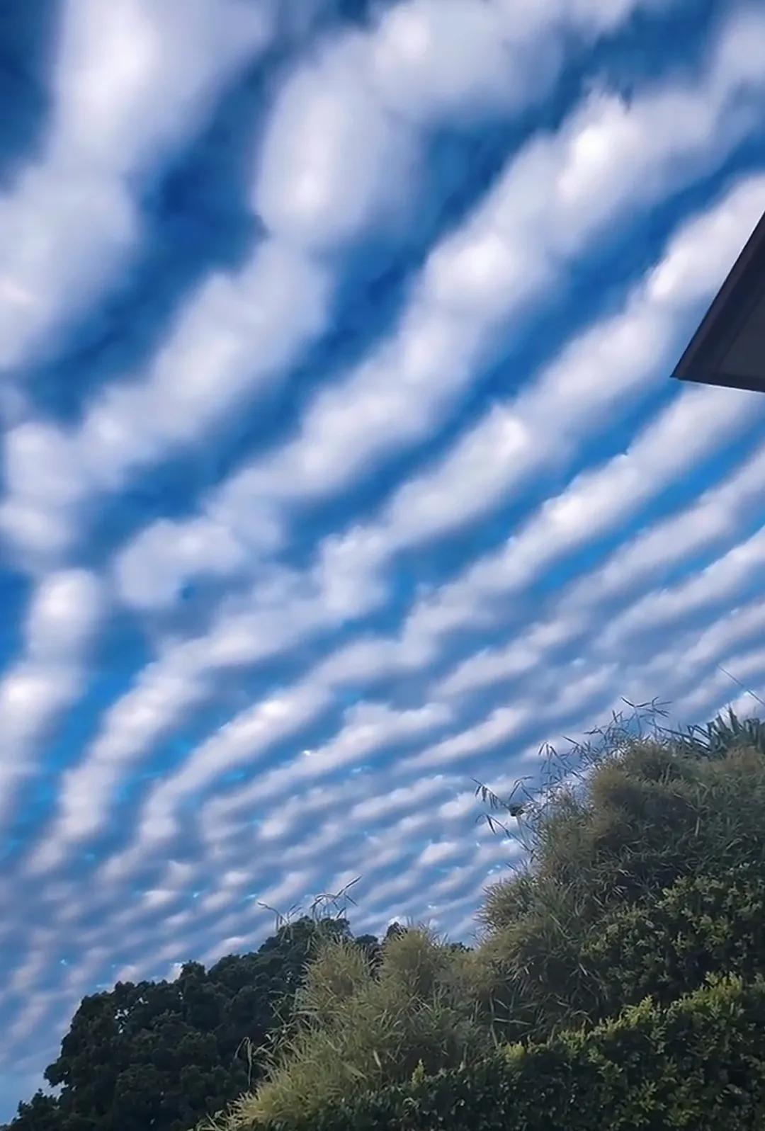 天空的云彩非常壮观,这一幕近日出现在澳大利亚的帕里斯班。 很多网友看到以后第一感觉就是,会不会与勘察加半岛附近的地震有关? 我也曾经以为这与地震有关。 后来一查才知道,根本就没有地震云这一说。 从科学的角度来解释,就是冷热两个气团相遇,在融合的过程中,冷空气向下有个拉力,暖空气向上升,在云端不断的形成凝珠! 就这点事。 不过非常漂亮,像波浪,又像斑马纹。 #头号创作者激励计划#