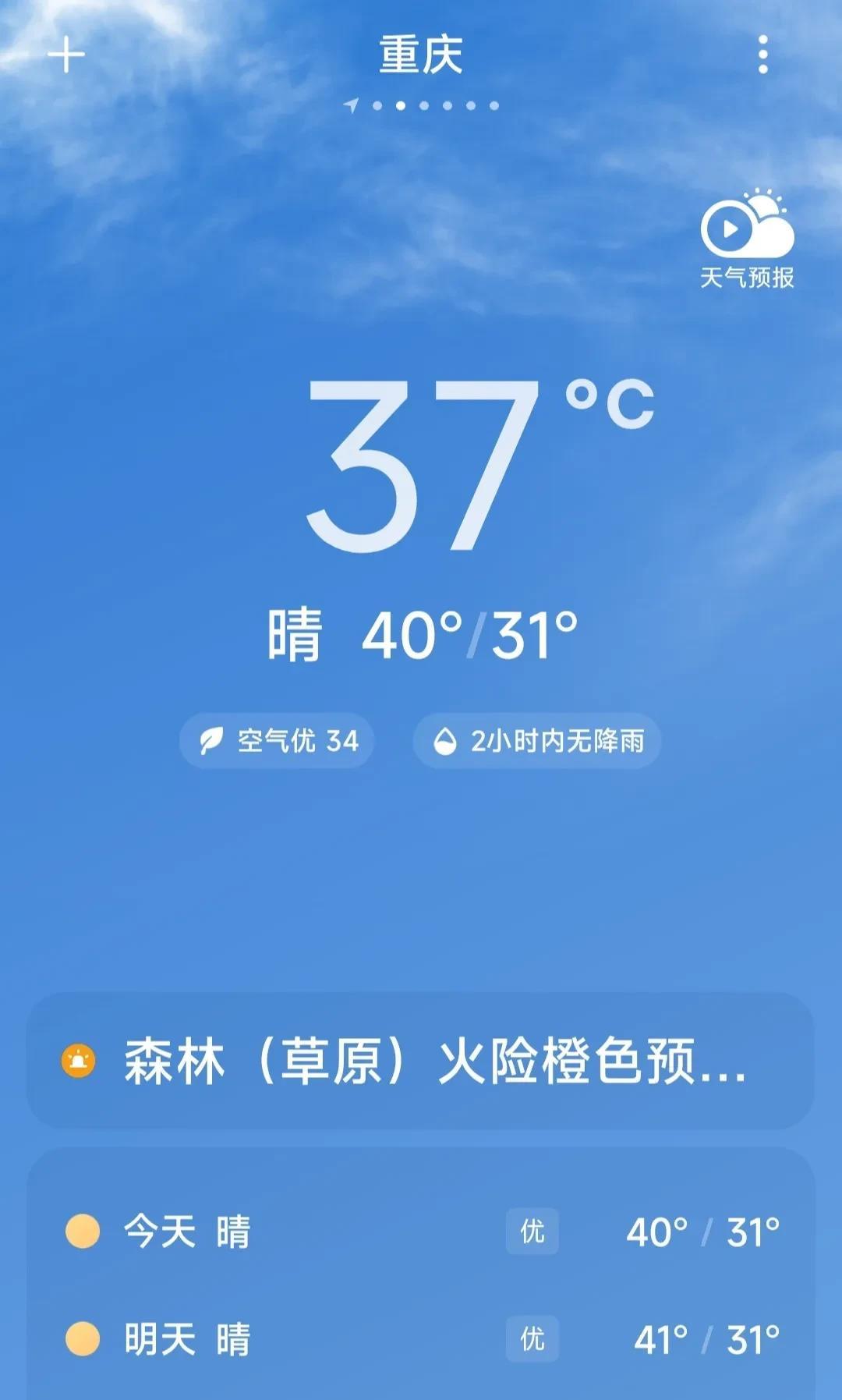现在十一点多钟,桐梓的温度是30度,最高温度能达到33度,重庆的温度在31到40