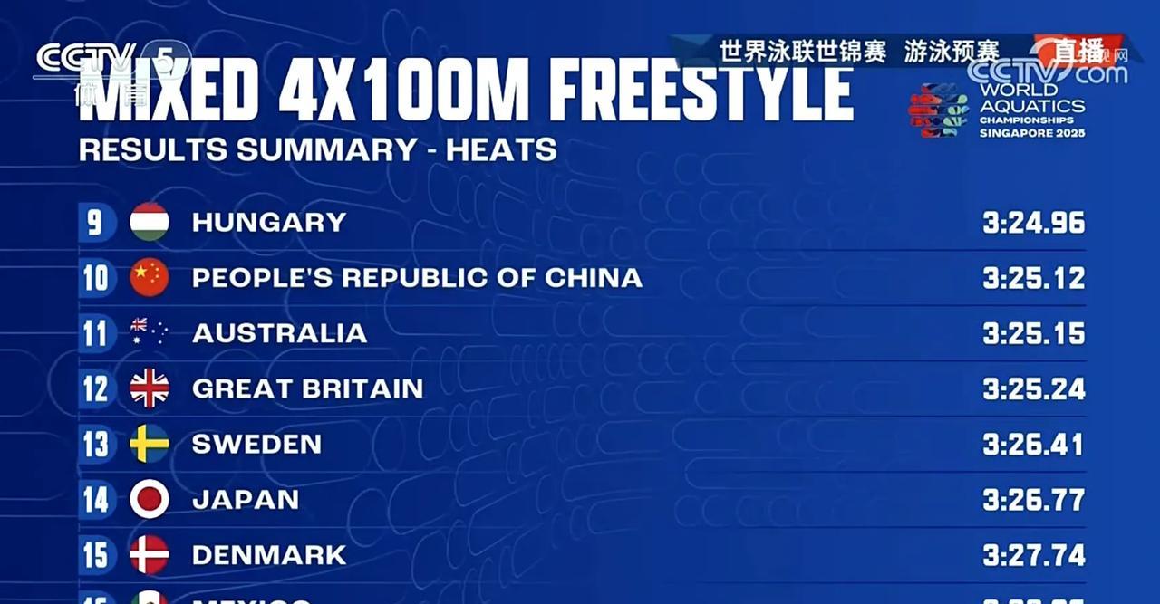 中国队预赛第10无缘决赛! 男女4x100米自由泳接力预赛刚刚结束! 2025新