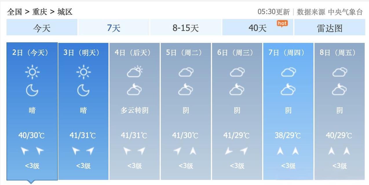 噢!43度高温的阴天,重庆人,可能会闷死啊!8月4日到9日,重庆主城区,持续40