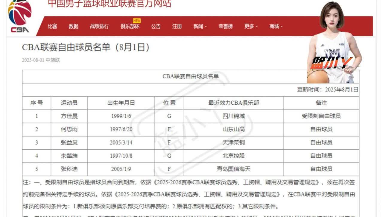 快抢!CBA联赛自由球员名单更新… 榜眼领衔、山东射手在列… CBA官方8月