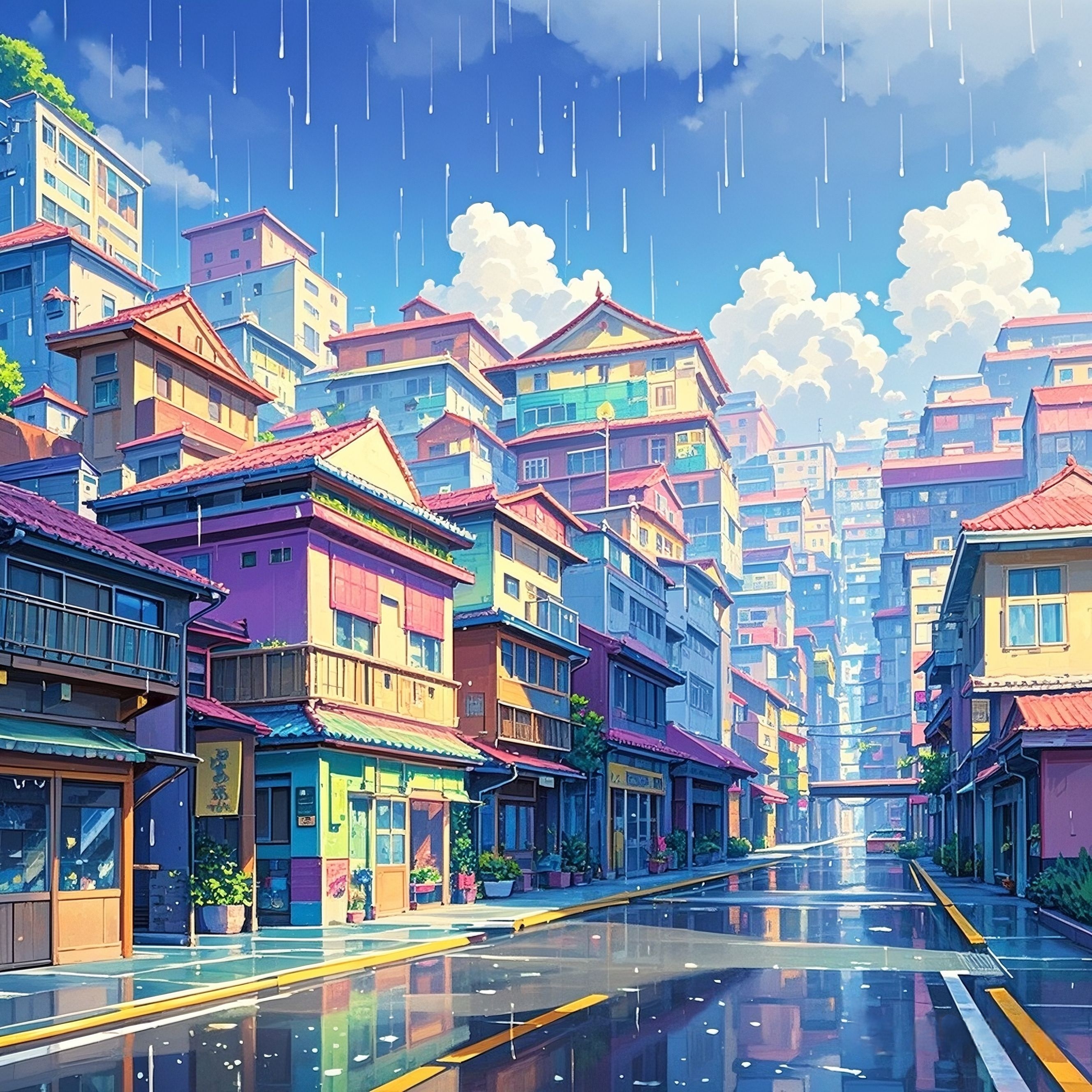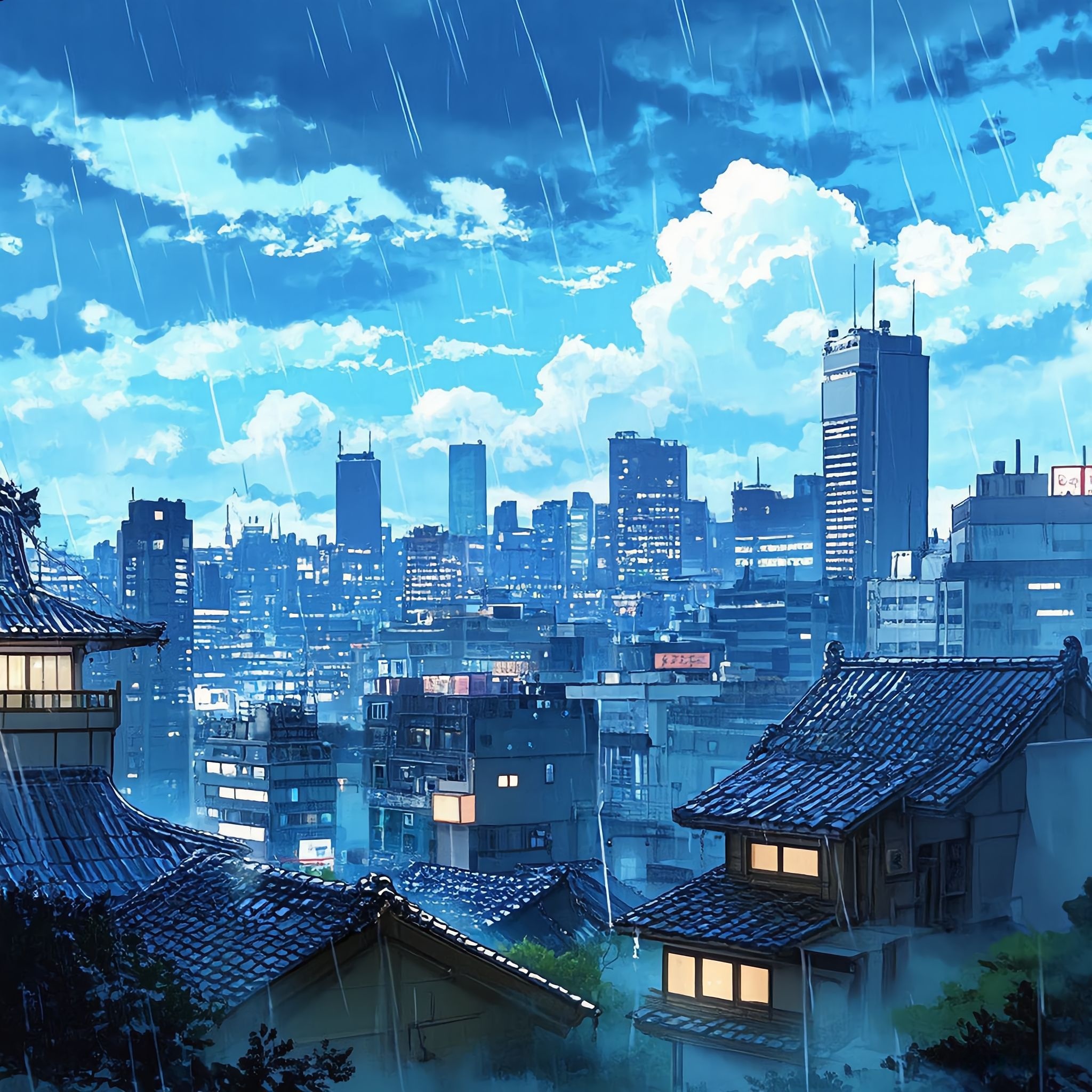 雨滴在檐角悬停,城市成了被慢放的胶片,我们站在世界悠长的时光里。