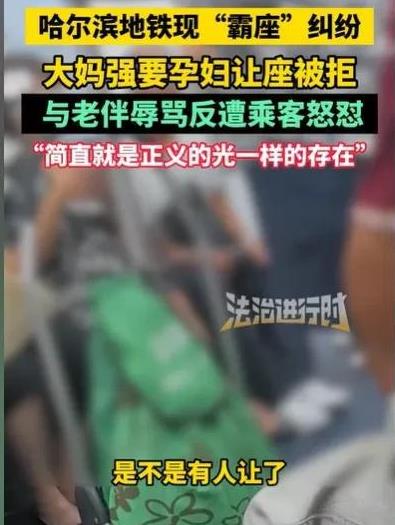 黑龙江哈尔滨,女子怀孕了,坐地铁时,正好有位置,结果上来了一对大妈大爷,大妈要怀