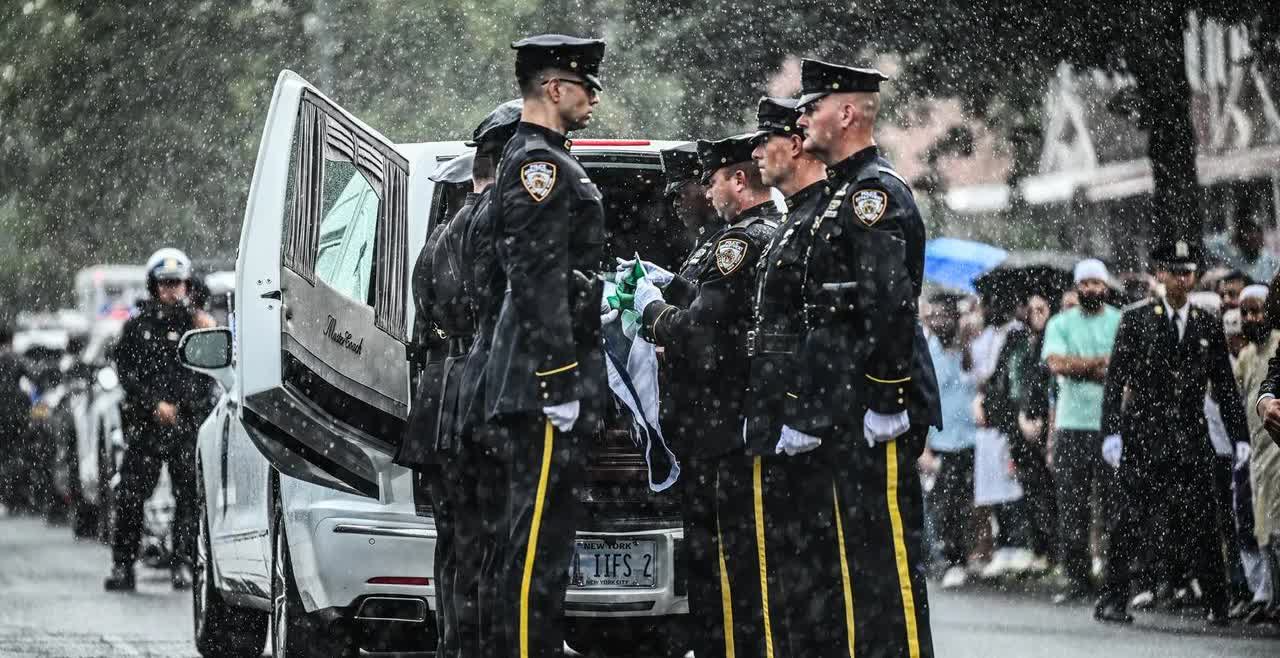 穆斯林的葬礼。纽约警察伊斯兰姆在执行任务时,不幸中弹身亡,纽约为其举行了隆重的葬
