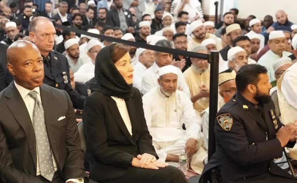 穆斯林的葬礼。纽约警察伊斯兰姆在执行任务时,不幸中弹身亡,纽约为其举行了隆重的葬礼。 伊斯兰姆身份特殊,他是一名孟加拉国移民,信仰伊斯兰教。纽约州长霍楚尔头缠黑纱,出席他的追悼会。霍楚尔是民主党,在移民与宗教问题上一向和特朗普不对付,她这也是借着葬礼的机会表明立场