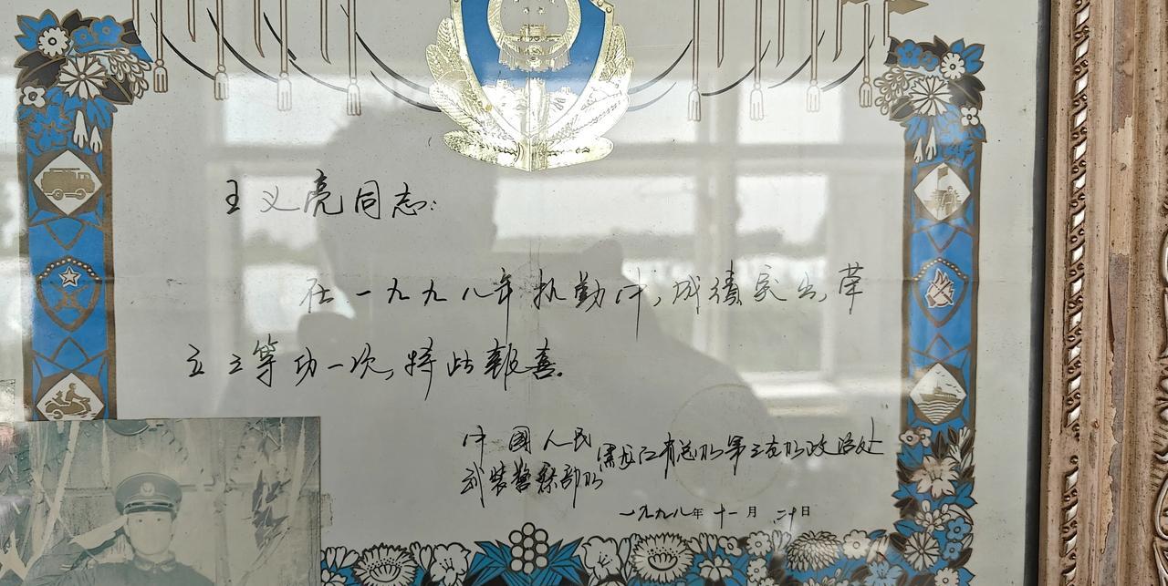 图片上的武警战士1998年在黑龙江省香兰监狱,一次犯人种地逃跑中,他荣立三等功。 我们昨天老战友八一聚会,去的肇东市五站镇新发屯,战友喜春老朋友农民70岁的王大哥家。 香兰监狱犯人当年主要是种地,附近都是农场。 那天儿子他们四个武警,一个班长俩老兵,新兵就我儿子自己。负责警戒100多重刑犯出监狱,到农场收割粮食。犯人有的快到服刑期,有的刚刚进来不长时间。 就在那天,几个重刑犯多少天前就预谋今天逃跑。 他说儿子当了五年兵,就是没有文化,有文化就考军校了。我说你儿子在哪里?他说复员就去珠海打工去了。走20多年了。