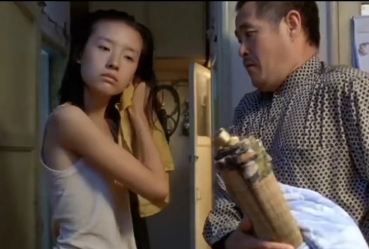 这个是谋子导的,据说就是要体现出女主盲人的可怜感觉,但让人家穿那么少就可怜了吗,妈的,谋子不地道