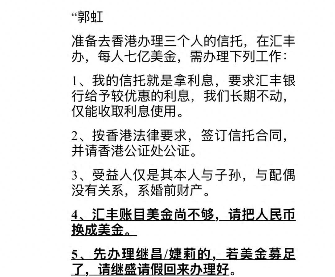 事实上,宗馥莉根本不是争遗产,也不是想把小三及3名子女赶尽杀绝,实在是气不过的他们当年的行为。只想替母亲报当年他们伤害母亲的那一剑之仇。 小三及私生子,曾经是一个多么难听的字眼和身份。 如今世道变了,私生子可以大行其道地继承遗产了。小三也不以为耻,反以为荣了。 在这个笑贫不笑娼的时代,有钱就是爷。没钱,你什么都不是。 宗家的财产争夺战无非就婚姻保卫战的迟到版本而已。 本来,宗庆后的所有遗产都是属于宗馥莉、施幼珍和101岁老母亲的。现在又冒出三个私生子来争夺财产,本来简单的事情变得复杂化了。 我们来理一下事情的来龙去脉: 宗庆后在生前就为3个私生子做好了布署,为他们分别在汇丰银行存了7亿美元,而且特别声明这笔钱只属于三个孩子的婚前财产,与他们的配偶没有任何的关系。未来,他们的孩子可以继承。 宗庆后签遗嘱前对宗馥莉的唯一要求,就是希望宗馥莉继续往汇丰银行注入资金,注满为止。 只要宗馥莉答应,宗庆后就签遗嘱。 2024年2月2日,宗庆后与长女意见达成一致,宗宗庆后签署的遗嘱。 2024年2月24日,宗庆后去世。 2024年3月14日,宗馥莉与宗继昌、宗婕莉、宗继盛签订了一份协议。宗馥莉同意继续办理信托,过渡期内由宗馥莉担任受托人股东,办理好了之后,由三个弟妹指定人士管理,宗馥莉不再参与。 三个私生子也同意不再争夺遗产,会履行应该履行的手续。 此事圆满结束。 但如今,宗馥莉不愿意继续注入信托资金了。 为此,娘几个就这么炸了。也不管老宗生前立的“一妻一女一布鞋”的人设了。 总之,一切向钱看。 目前,很多人都说宗馥莉要输了。 事实上,宗馥莉根本不承认父亲要求属下办理信托的手条。 不承认,不注入资金,你能奈我何? 再说,宗馥莉手里有遗嘱,这才是王道啊。 不管怎么样,这件事我站宗馥莉。