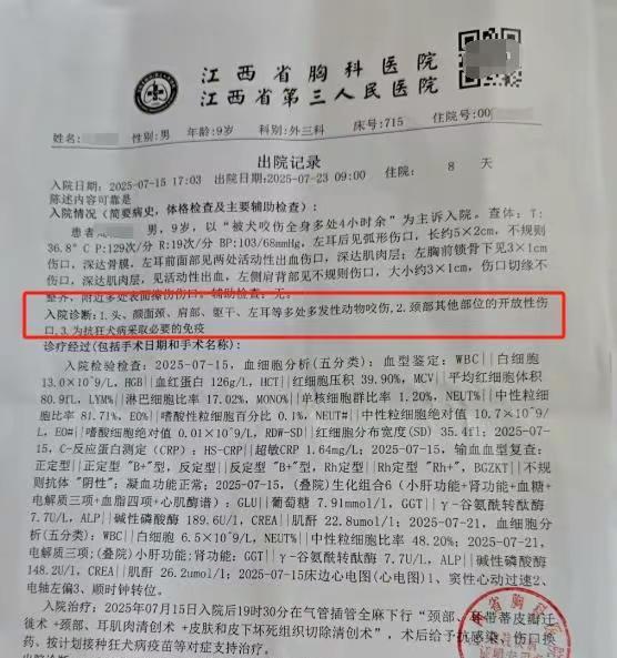 江西南昌,9岁男孩暑假去同学家串门,却被拴在进门处的大狗咬伤,治疗就花了1万4,